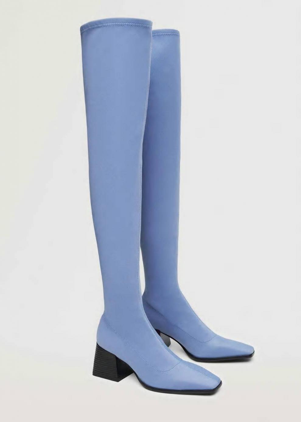 Tejido elástico Caña altaDiseño por encima de la rodilla Punta redonda Tacón bloque El tacón mide 7 cm