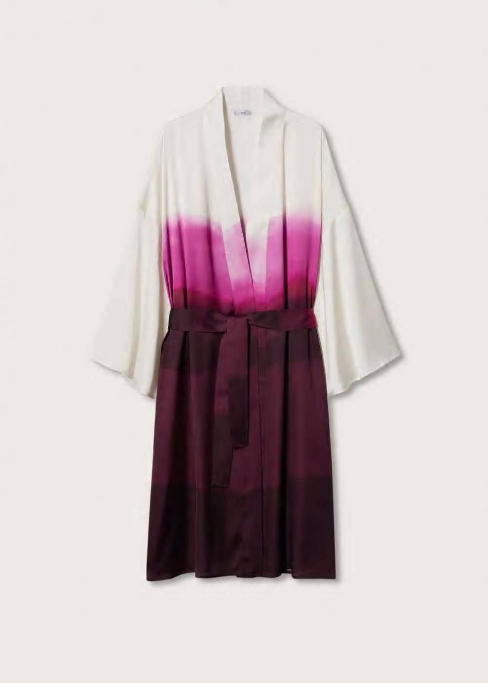 Tejido fluido Estampado degradado Diseño ancho Diseño largo Cuello abierto Manga ancha tres cuartos Cinturón desmontable Ramadan Collection Colección fiesta y ceremonia Total look