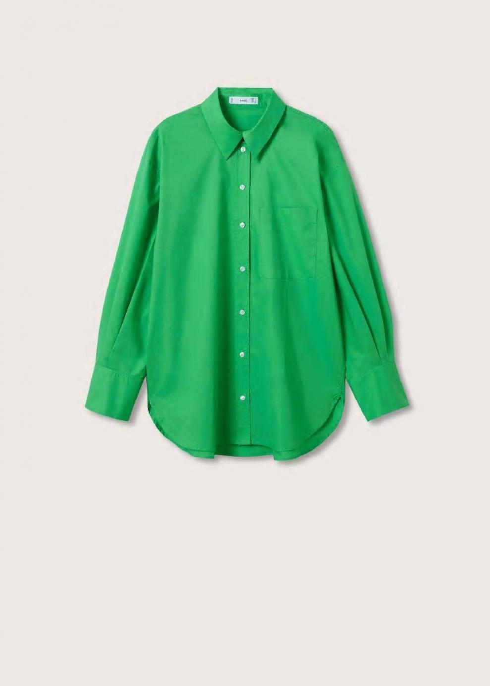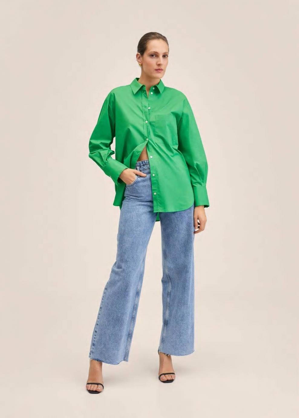 Diseño largo Manga larga Cierre delantero Tejido ligero Tejido popelín de algodón Diseño oversize Cuello camisero Manga larga abotonada Bolsillo de parche en el pecho Cierre de botones en la parte delantera Las prendas etiquetadas como Committed son productos que han sido confeccionadas con fibras y/o procesos de producción sostenible, reduciendo así su impacto ambiental. El objetivo de Mango es respaldar la implementación de prácticas más comprometidas con el medio ambiente, aumentando así, el número de prendas sostenibles en su colección.