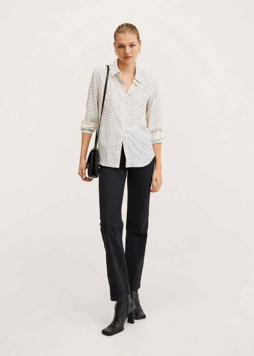 Colección Committed Tejido fluido Diseño recto Diseño estampado Cuello camisero Manga larga abotonada Cierre de botones en la parte delantera Disponible Plus Las prendas etiquetadas como Committed son productos que han sido confeccionadas con fibras y/o procesos de producción sostenible, reduciendo así su impacto ambiental. El objetivo de Mango es respaldar la implementación de prácticas más comprometidas con el medio ambiente, aumentando así, el número de prendas sostenibles en su colección.