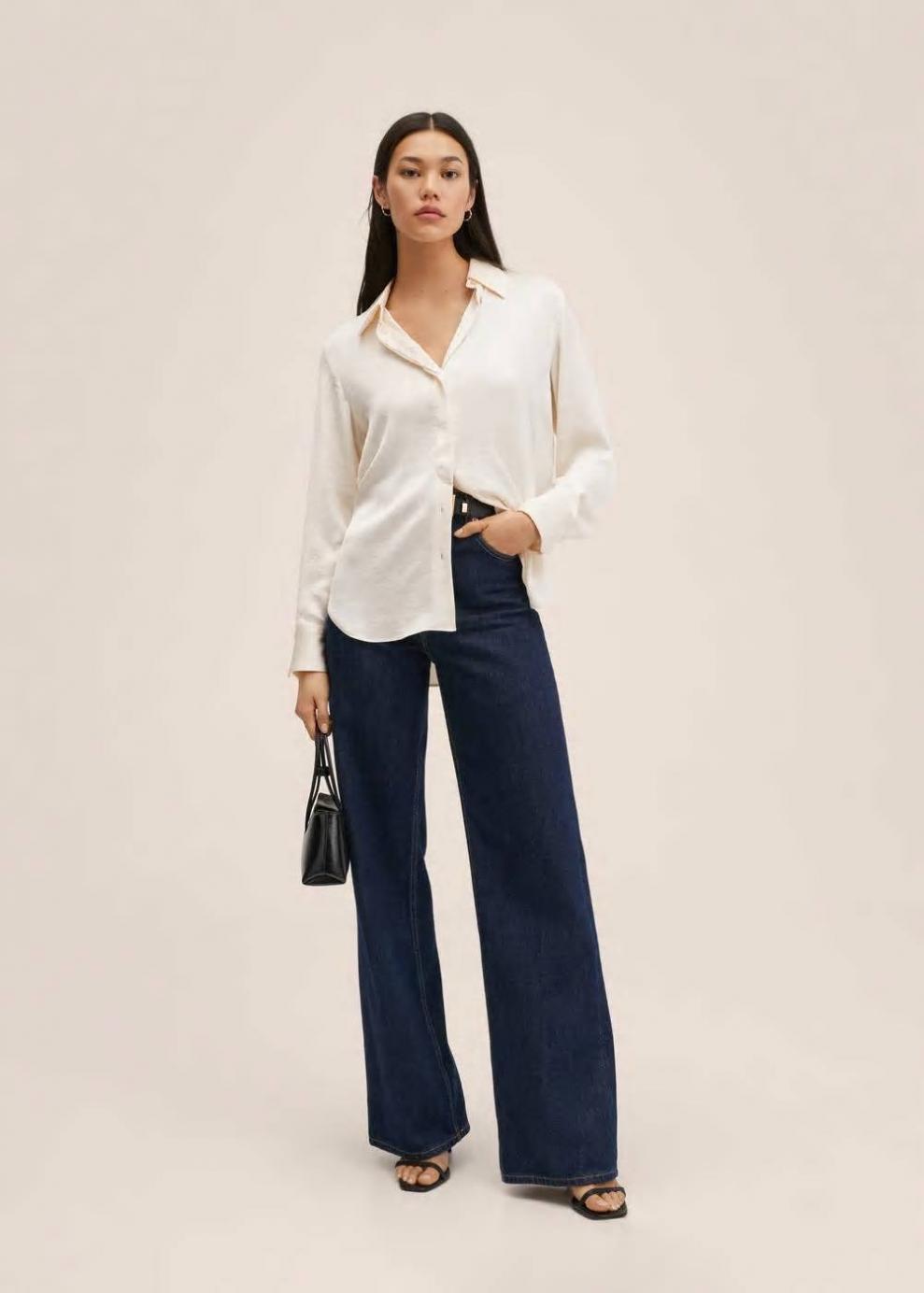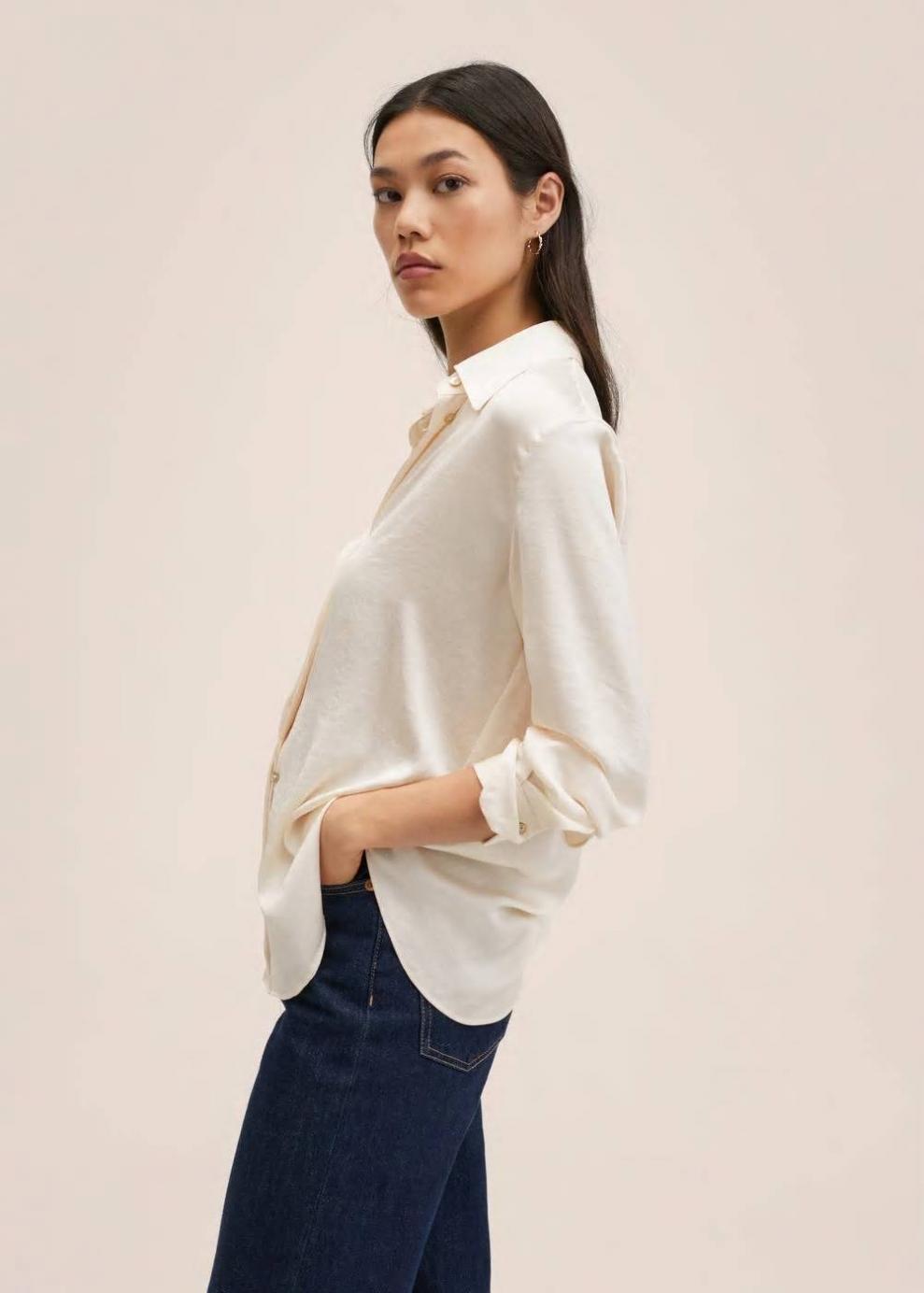 Regular fit Cuello camisero Manga larga Tejido satinado Tejido fluido Tejido ligero Cierre delantero Diseño estándar Tejido con textura Acabado satinado Diseño recto Cuello clásico Manga larga con puños abotonados Cierre de botones en la parte delantera Las prendas etiquetadas como Committed son productos que han sido confeccionadas con fibras y/o procesos de producción sostenible, reduciendo así su impacto ambiental. El objetivo de Mango es respaldar la implementación de prácticas más comprometidas con el medio ambiente, aumentando así, el número de prendas sostenibles en su colección.