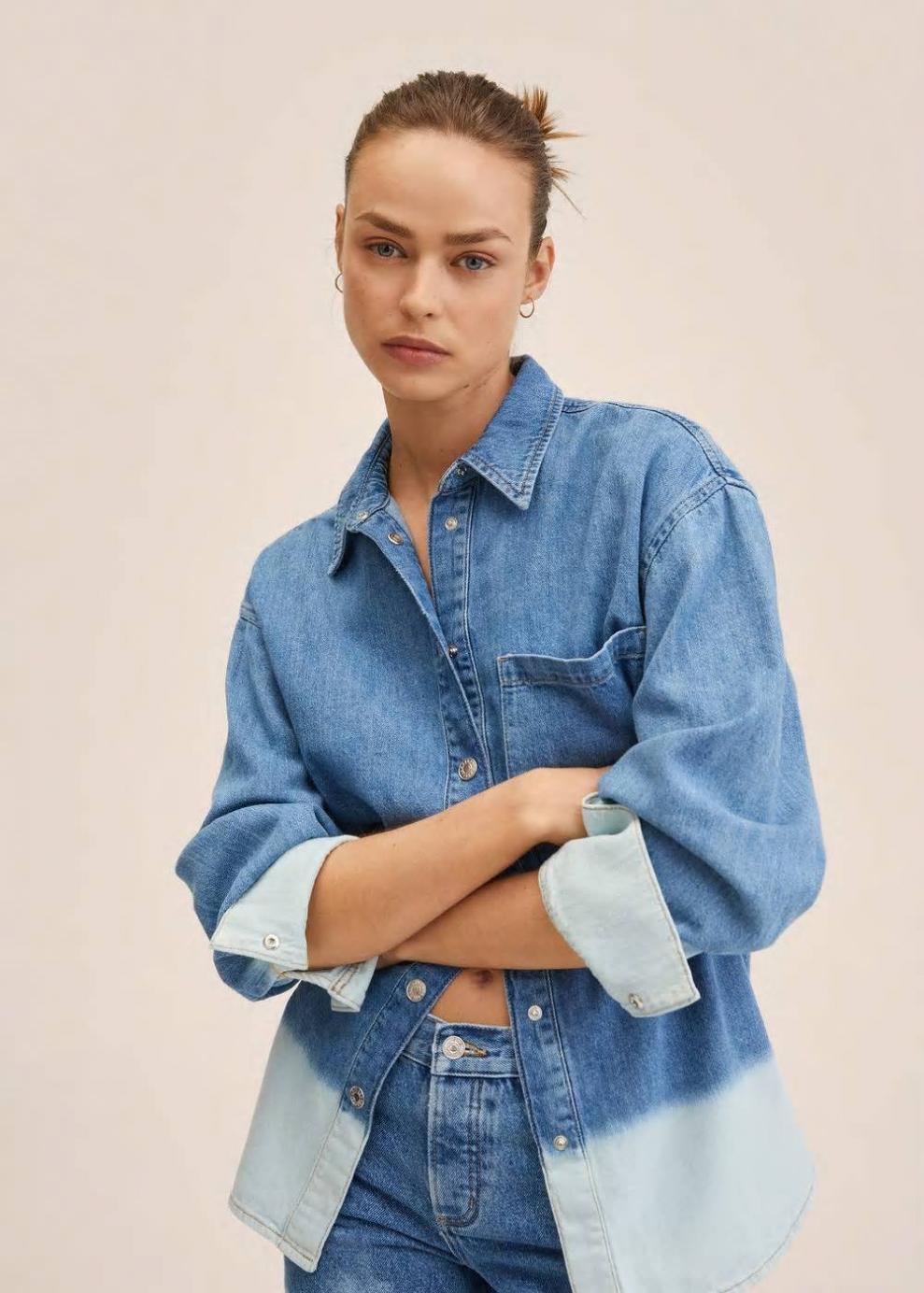 Tejido de algodón estilo tejano vaquero Estampado tie-dye Diseño oversize Diseño largo Cuello camisero Manga larga abotonada Bolsillo de parche en el pecho Cierre de botones en la parte delantera Total look Las prendas etiquetadas como Committed son productos que han sido confeccionadas con fibras y/o procesos de producción sostenible, reduciendo así su impacto ambiental. El objetivo de Mango es respaldar la implementación de prácticas más comprometidas con el medio ambiente, aumentando así, el número de prendas sostenibles en su colección.