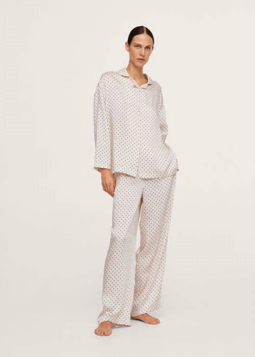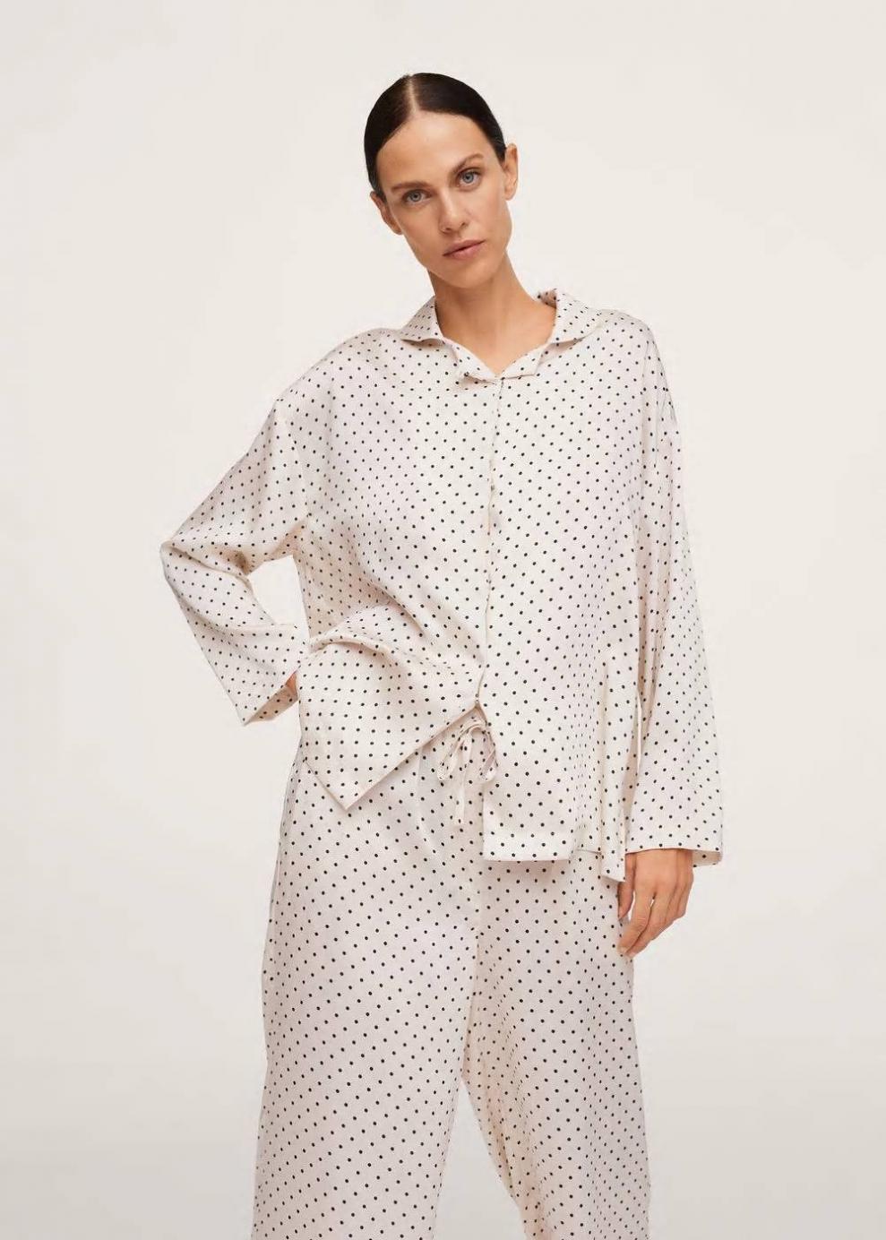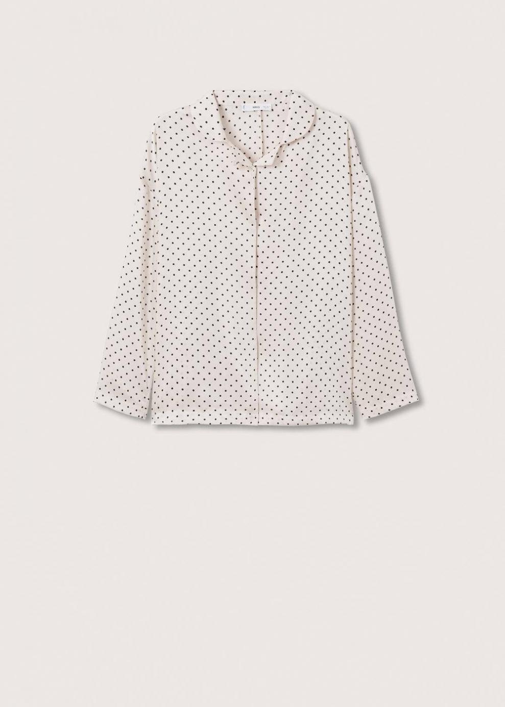 Exclusivo Online Tejido satinado Tejido fluido Estampado de lunares Diseño recto Cuello camisero Manga larga Cierre …