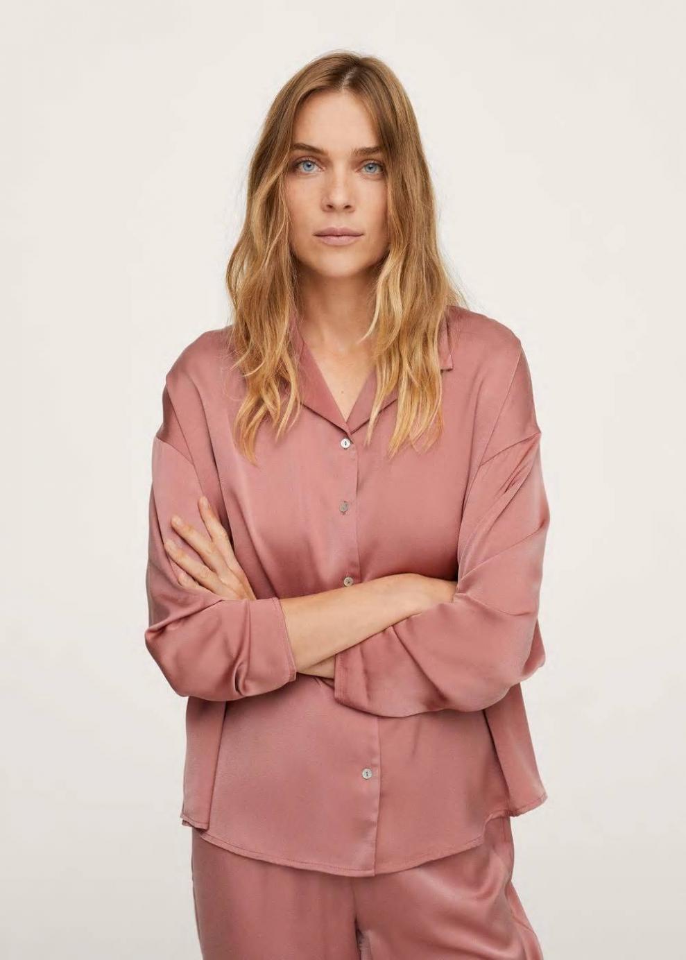 Exclusivo Online Tejido satinado Tejido ligero Diseño recto Cuello camisero Manga larga Cierre de botones en la parte delantera…