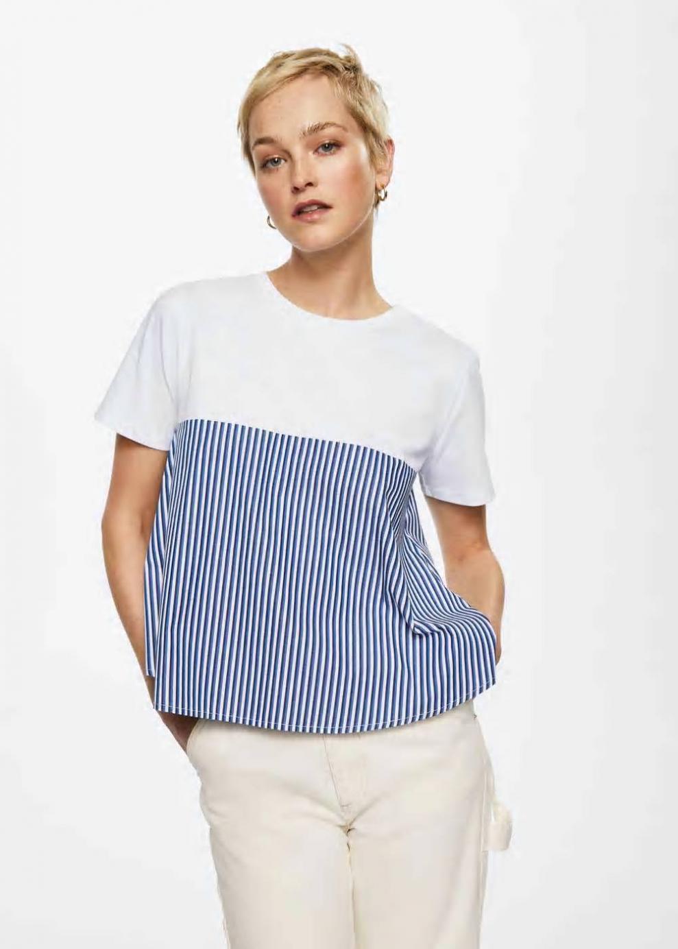 Mujer Camiseta 100% algodón rayas Blanco | Camisetas y tops Mango