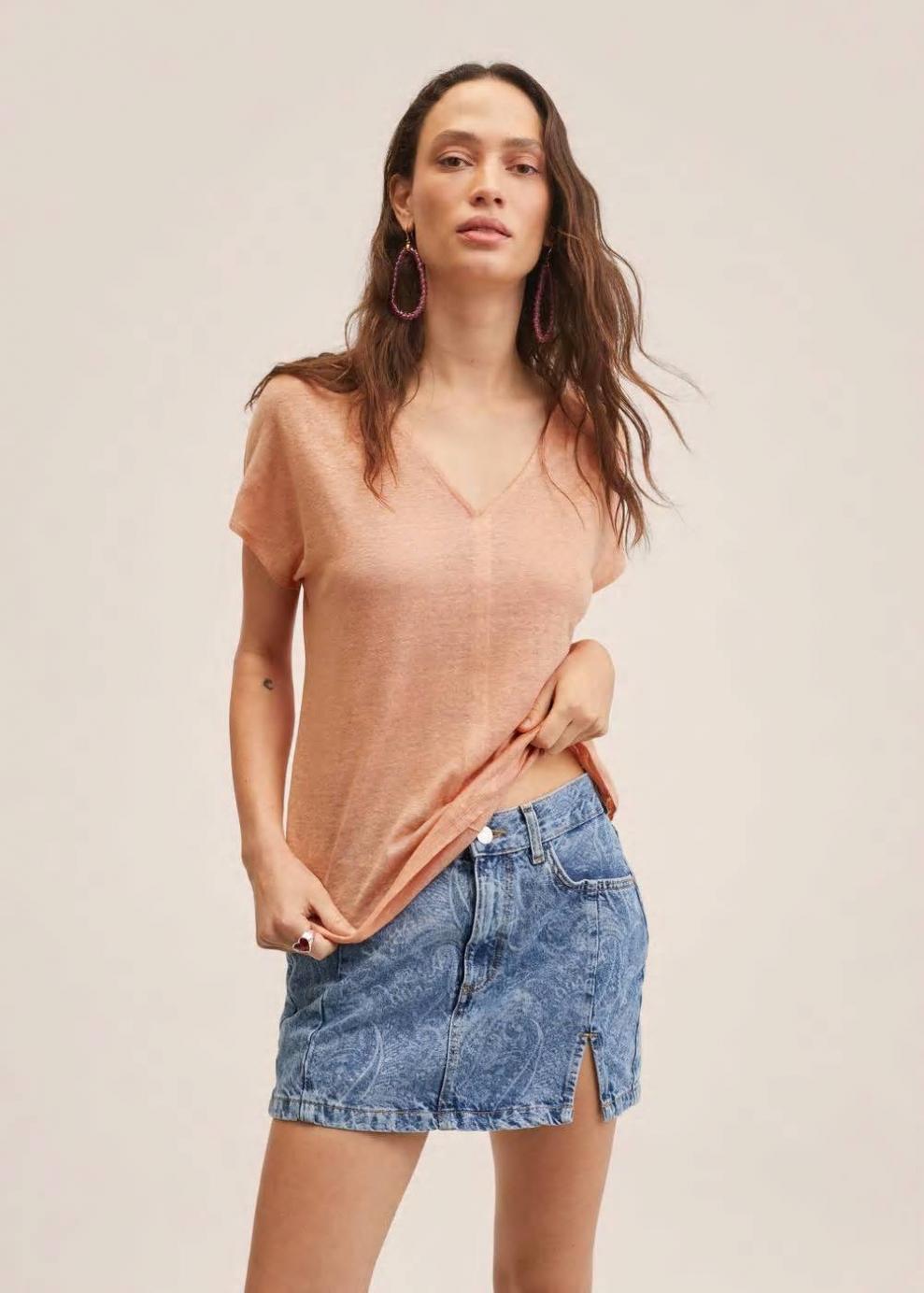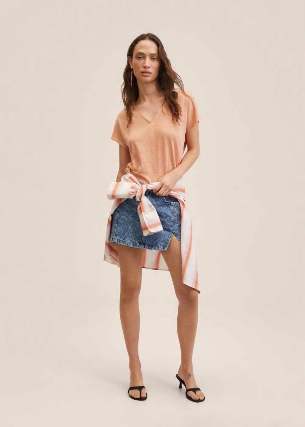 Mujer Camiseta 100% lino Rojo Coral | Camisetas y tops Mango