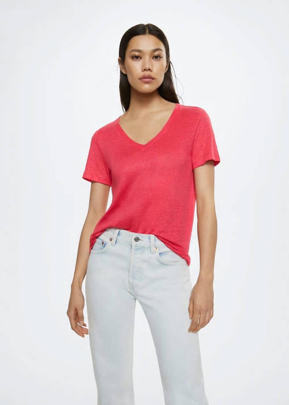 Sé el primero en valorar “Mujer Camiseta 100% lino Rojo Coral | Camisetas y tops Mango”