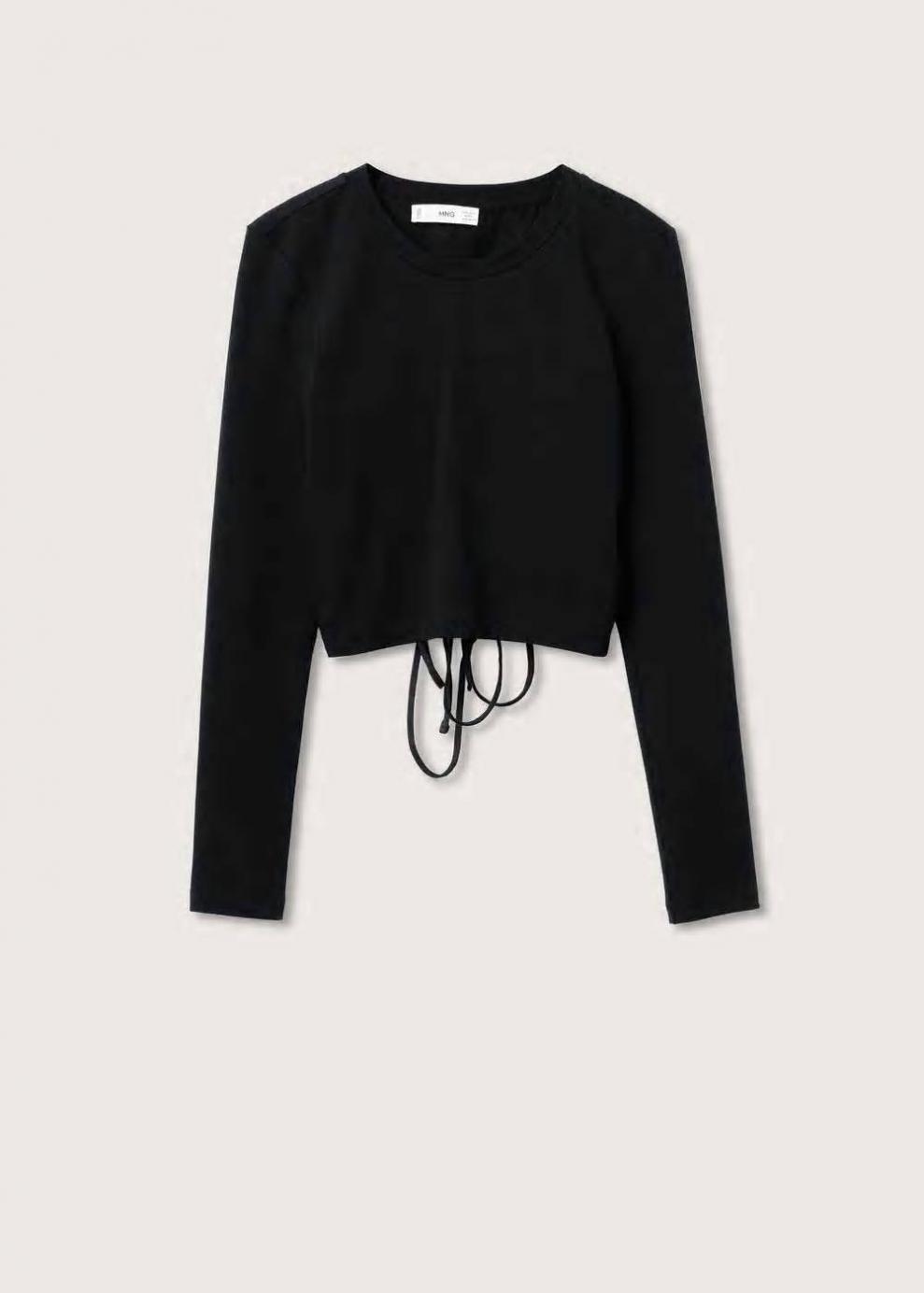 Tejido de algodón Tejido ligero Diseño entallado Diseño crop Cuello redondo Manga larga Abertura posterior Cintas decorativas