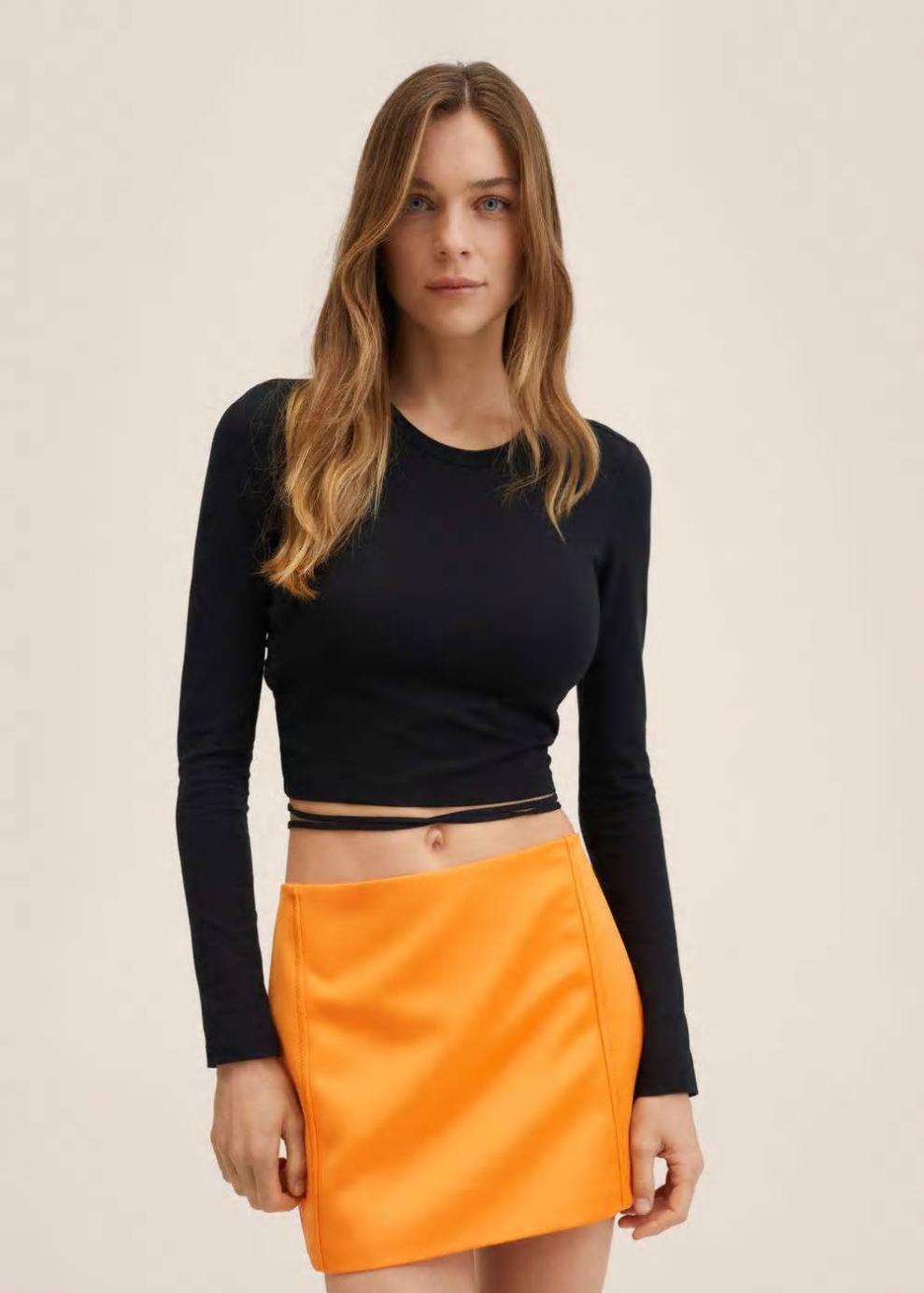 Tejido de algodón Tejido ligero Diseño entallado Diseño crop Cuello redondo Manga larga Abertura posterior Cintas decorativas…