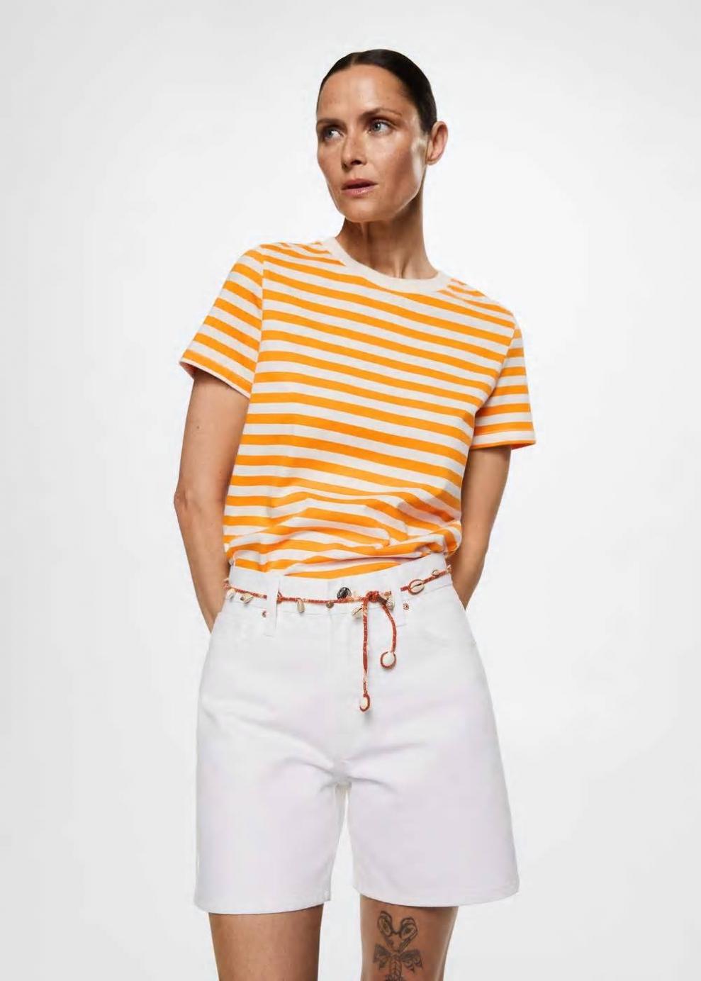 Mujer Camiseta algodón rayas Naranja Pastel | Camisetas y tops Mango