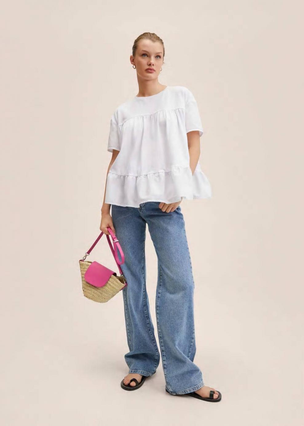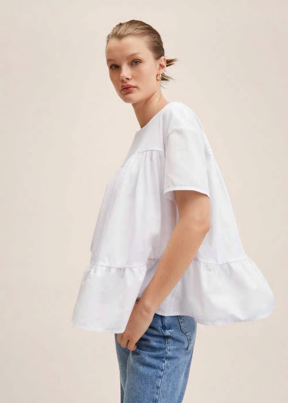 Colección Committed Tejido ligero 100% Algodón Cuello redondo Manga corta Detalle de volantes