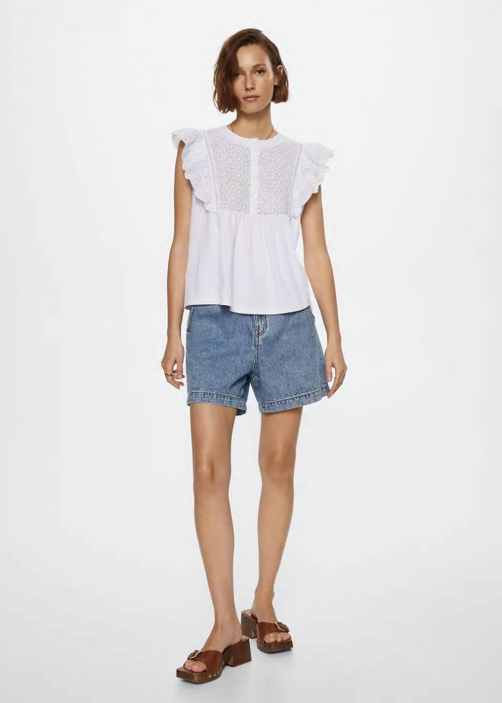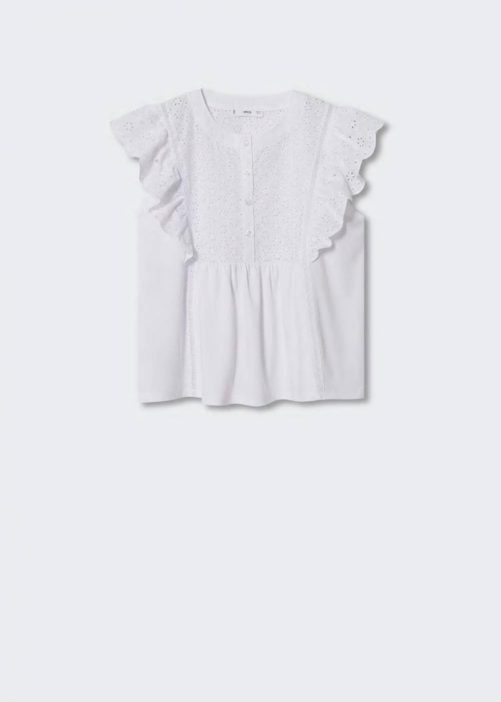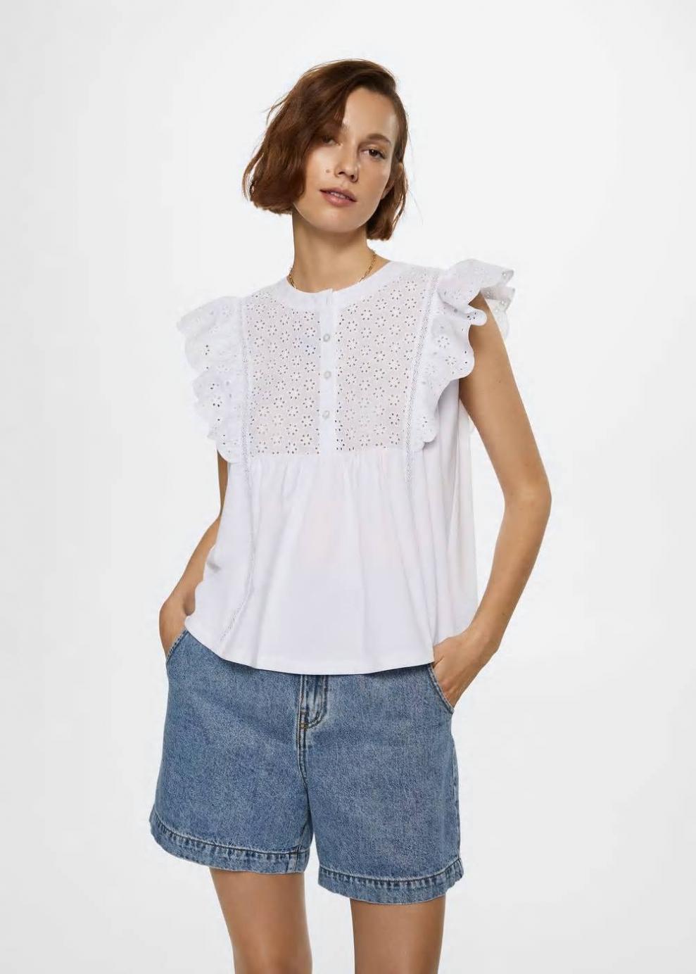 100% Algodón Panel bordado Panel calado Diseño recto Cuello redondo Sin mangas Volantes decorativos Cierre de botones en la parte delantera