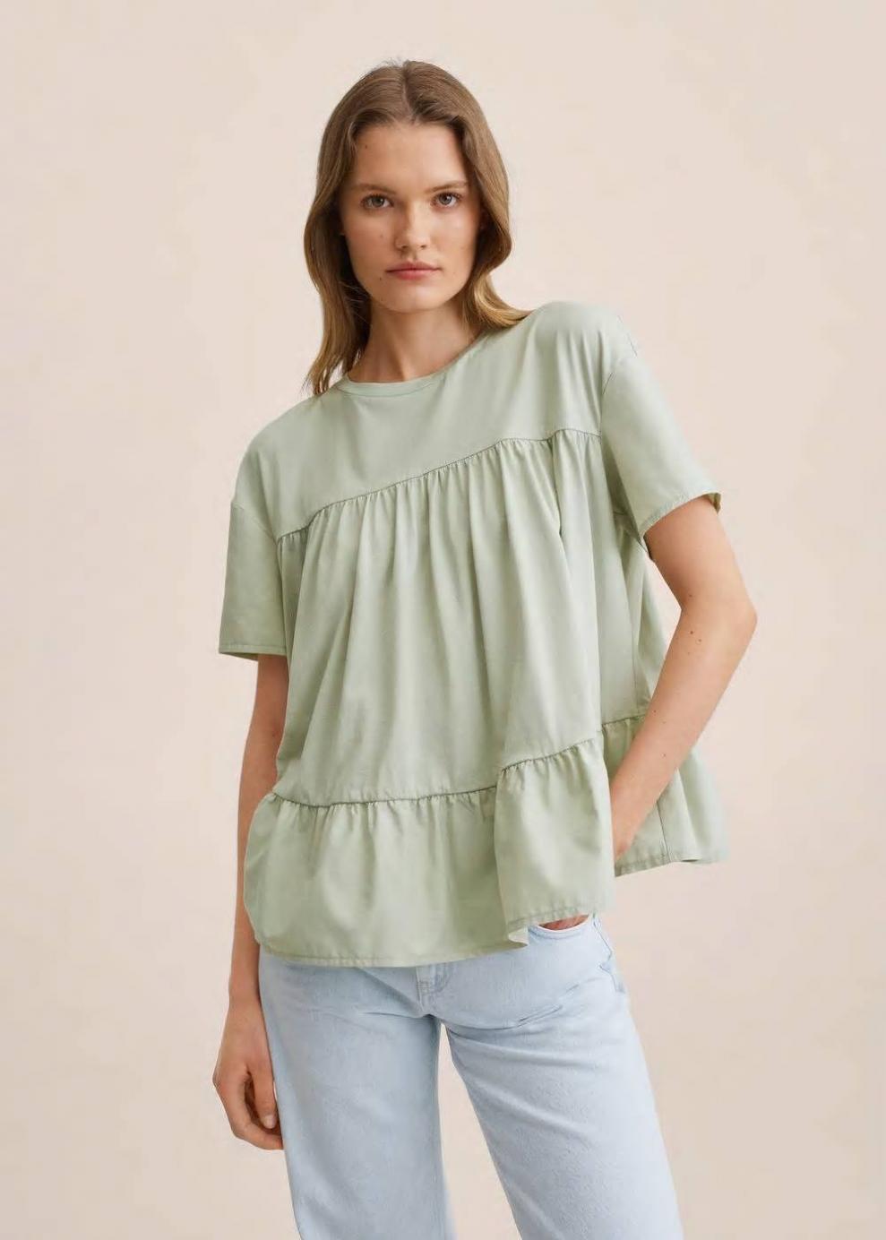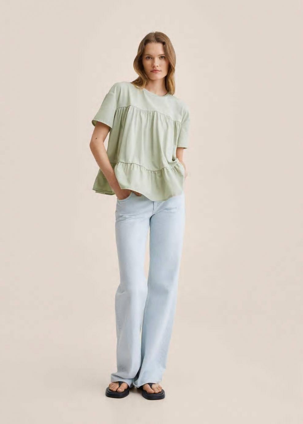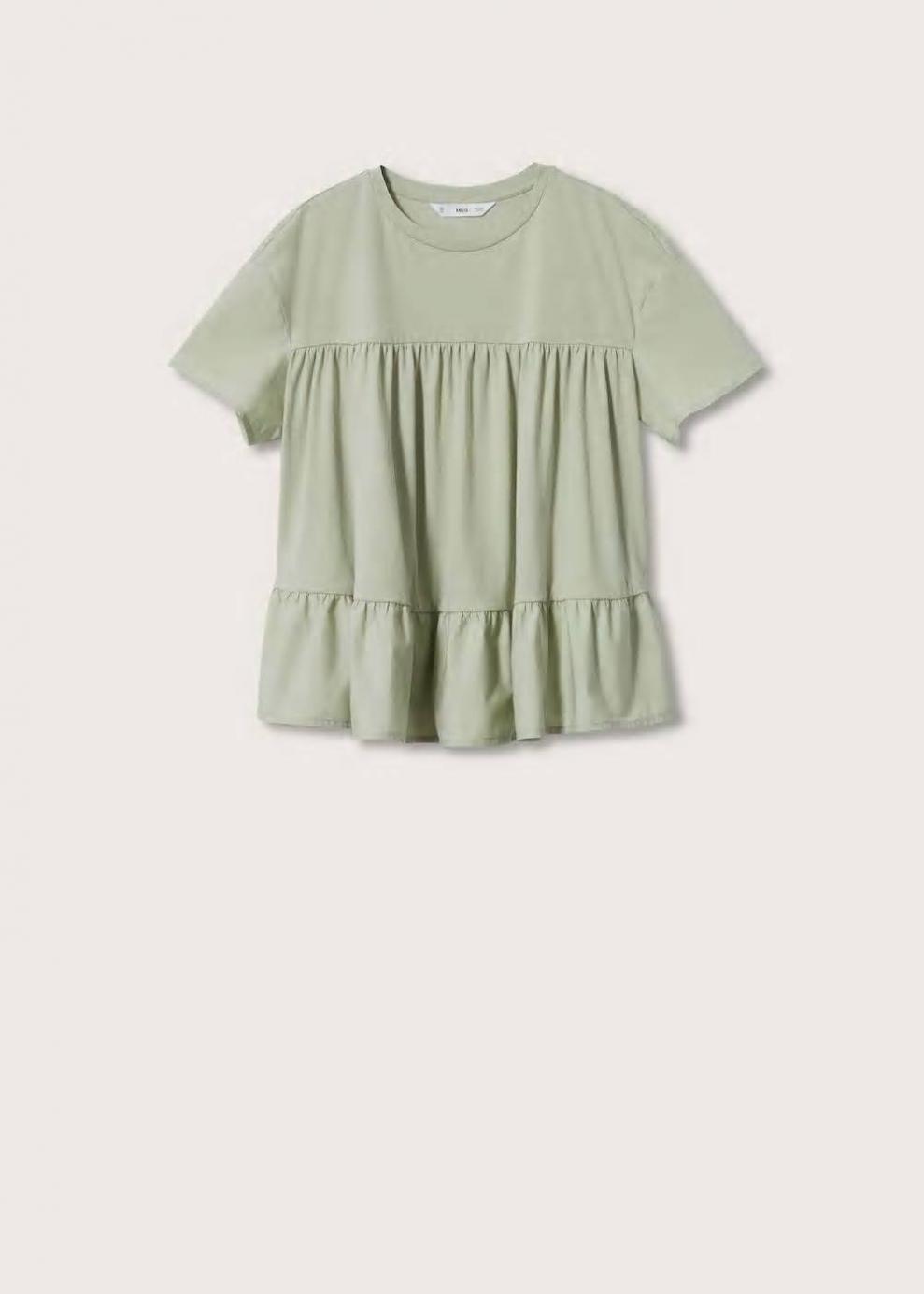 Mujer Camiseta algodón volantes Verde Pastel | Camisetas y tops Mango