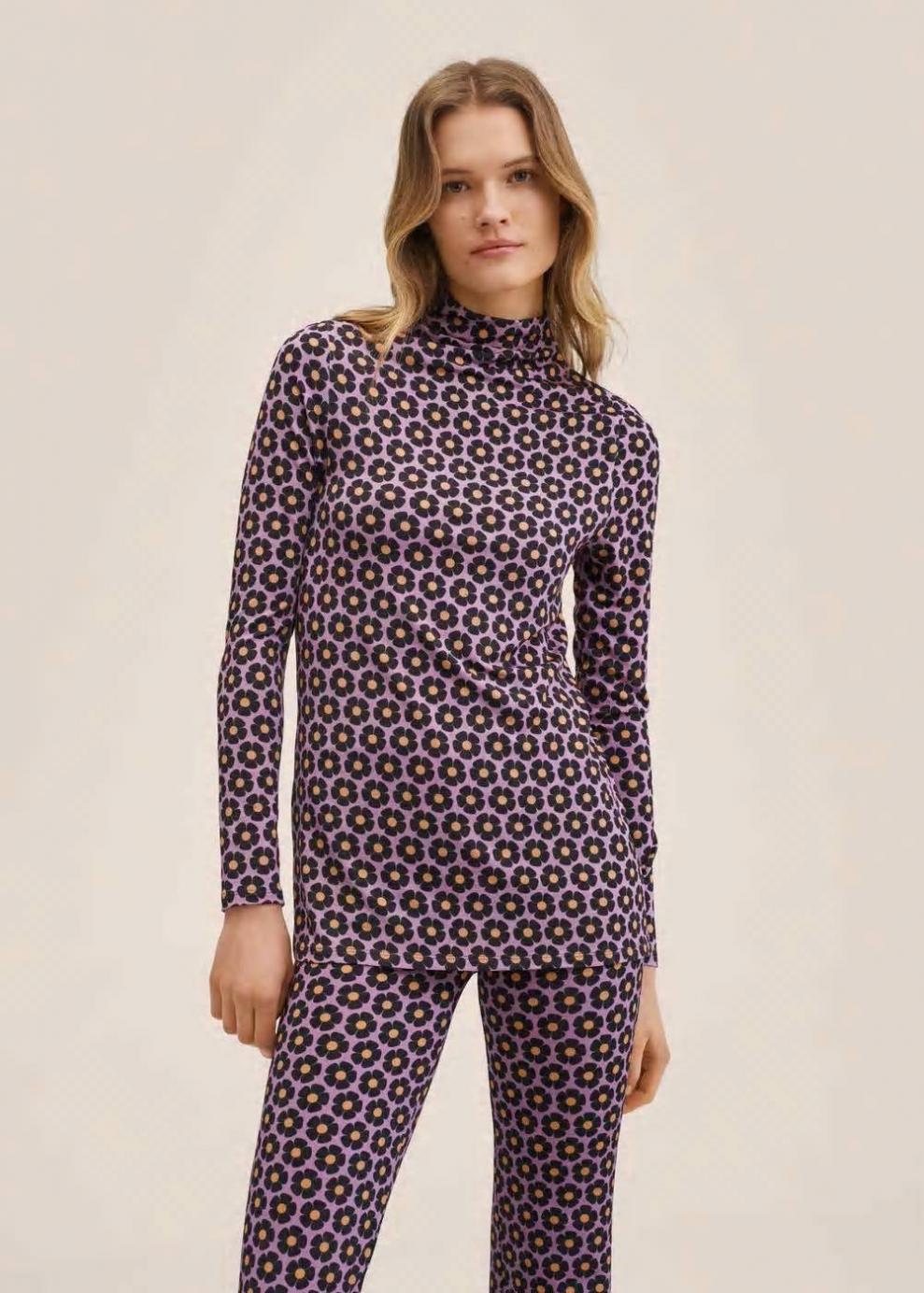 Diseño estándar Diseño recto Sin cierre Estampado retro Tejido ligero Cuello redondo Diseño recto Cuello perkins Manga larga Total look Exclusivo Online