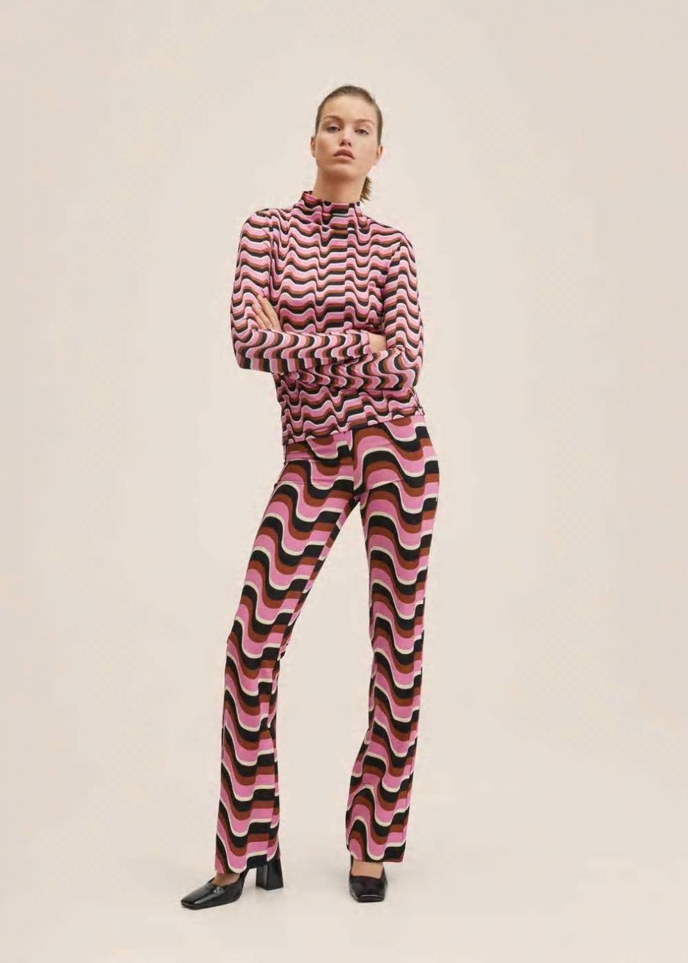 Diseño estándar Cuello alto Diseño recto Estampado retro Tejido ligero Diseño recto Cuello perkins Manga larga Total look Exclusivo Online Las prendas etiquetadas como Committed son productos que han sido confeccionadas con fibras y/o procesos de producción sostenible, reduciendo así su impacto ambiental. El objetivo de Mango es respaldar la implementación de prácticas más comprometidas con el medio ambiente, aumentando así, el número de prendas sostenibles en su colección.