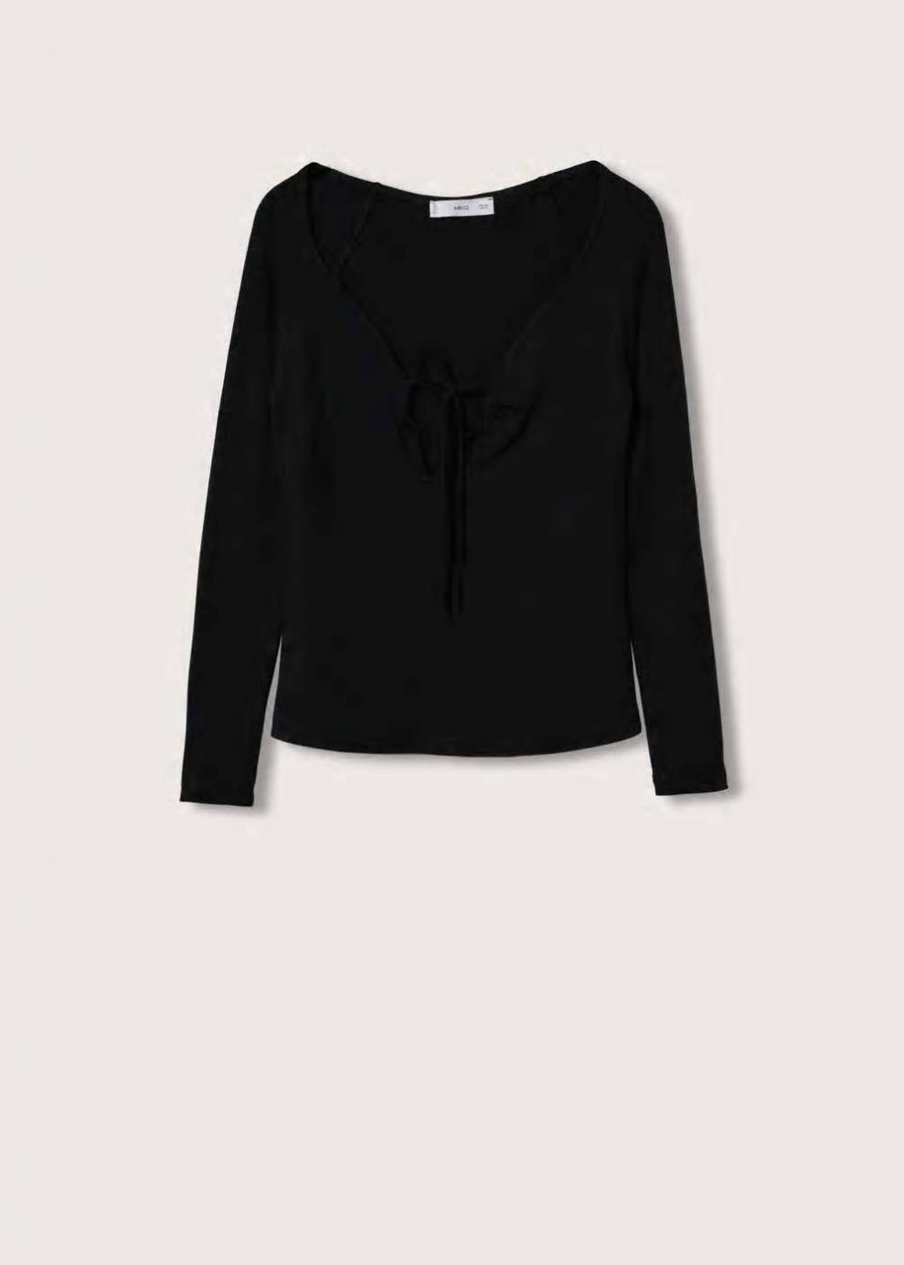 Mujer Camiseta manga larga abertura Negro | Camisetas y tops Mango
