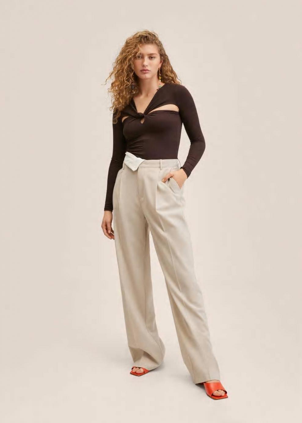 Tejido elástico Diseño entallado Cuello escotado Manga larga Detalle nudo Cut-out