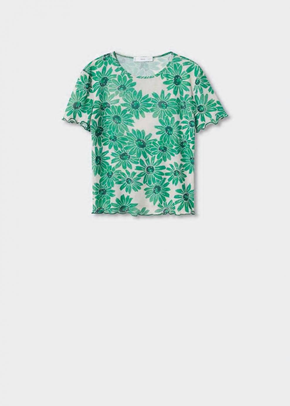 Tejido semitransparente Estampado de flores Diseño entallado Cuello redondo Manga corta Forro interior Terminaciones festoneadas…