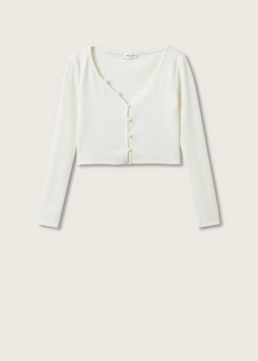 Slim fit Tejido de canalé Diseño crop Cuello pico Manga larga Cierre de botones en la parte delantera…