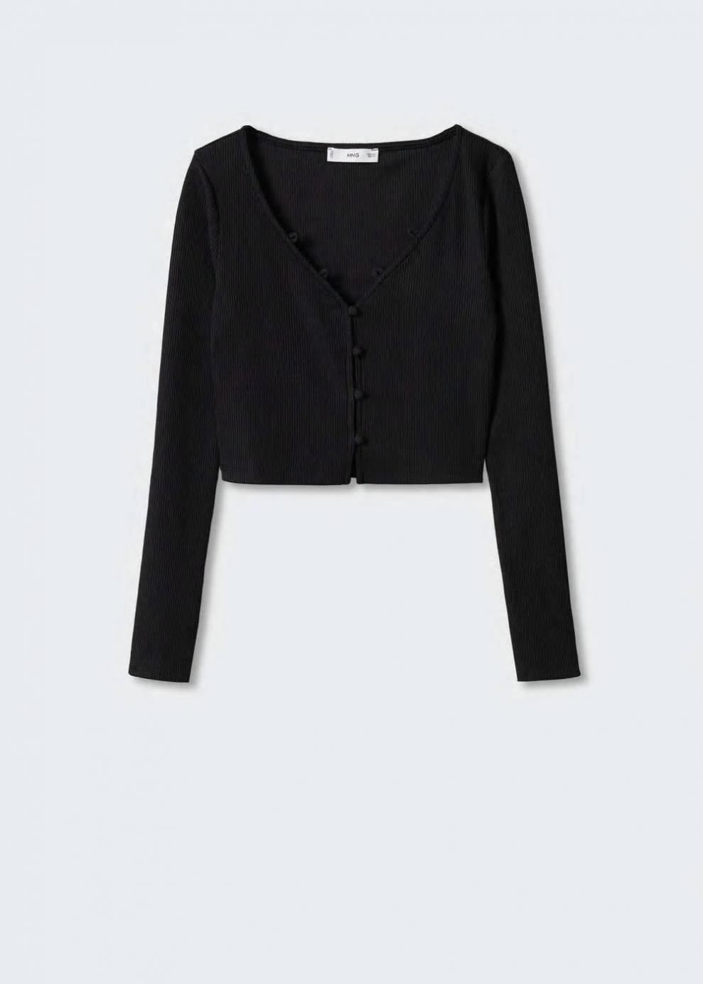 Mujer Cárdigan canalé botones Negro | Cárdigans y jerséis Mango