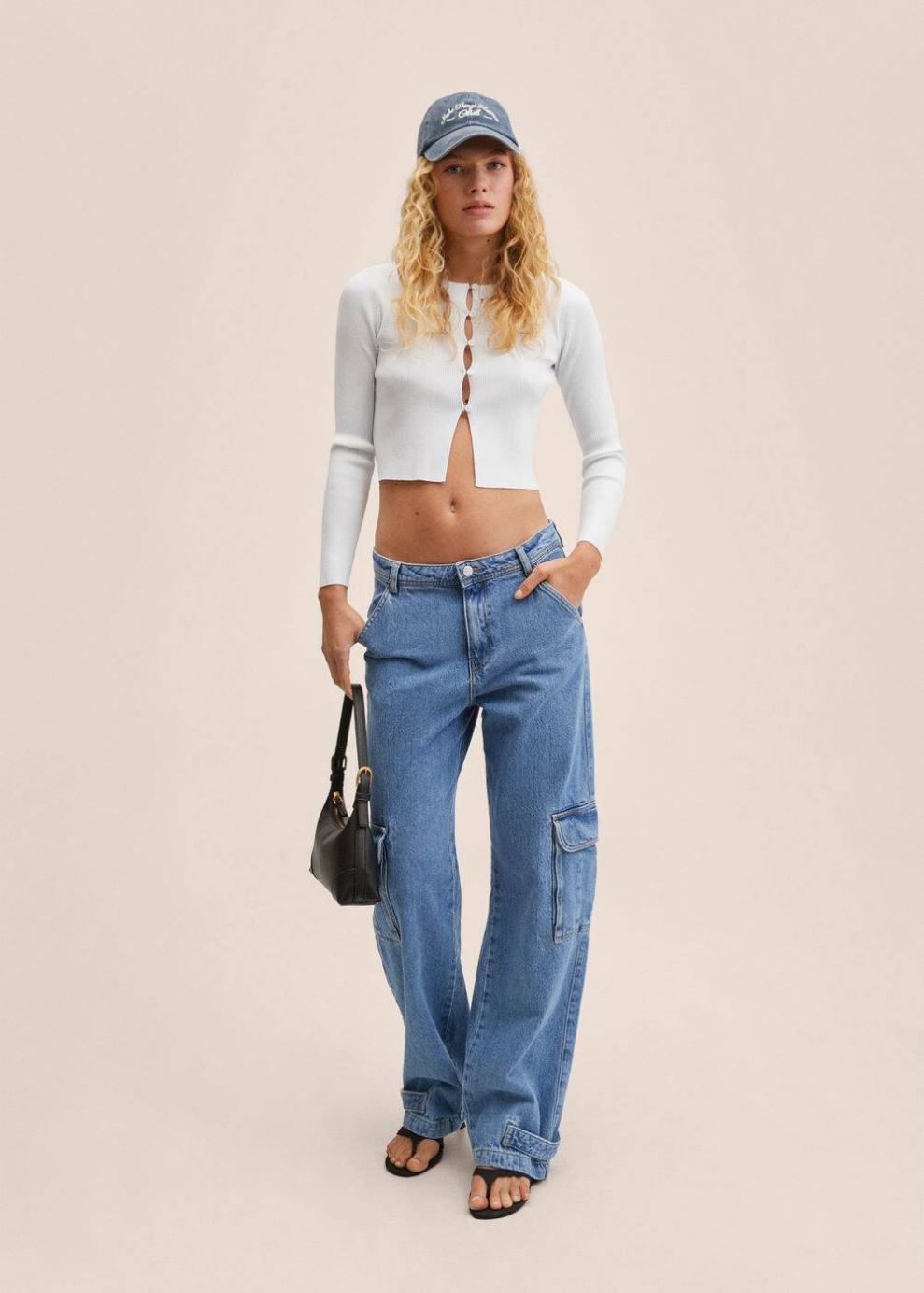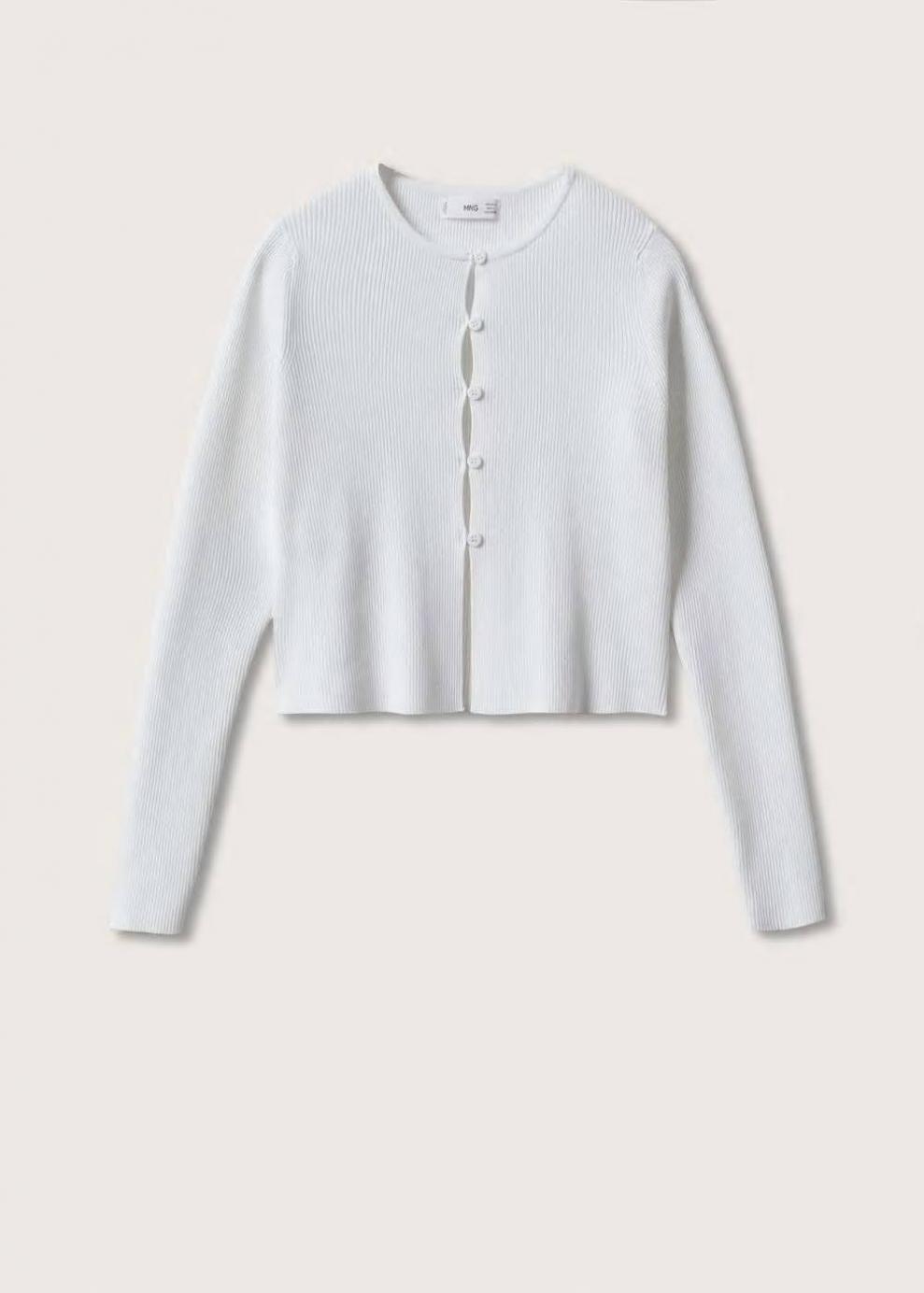 Tejido de punto fino Diseño de canalé Diseño crop Diseño entallado Cuello redondo Manga larga Aberturas decorativas Cierre de botones en la parte delantera…