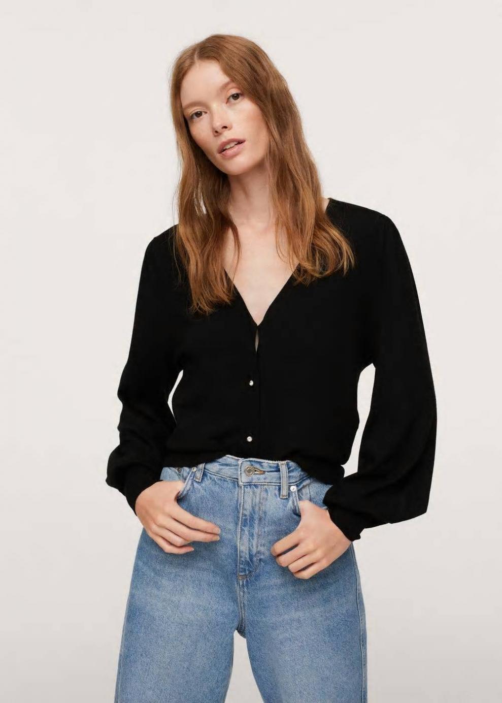 Sé el primero en valorar “Mujer Cárdigan manga abullonada Negro | Cárdigans y jerséis Mango”