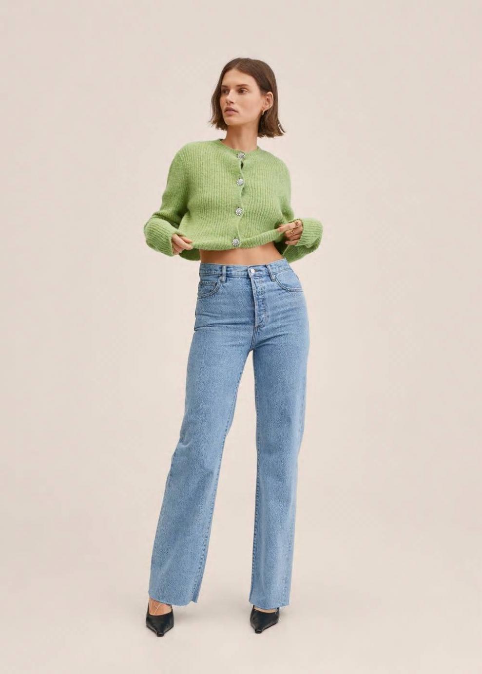 Tejido de punto Punto medio Cierre delantero Diseño recto Diseño crop Cuello redondo Manga larga Botones e…