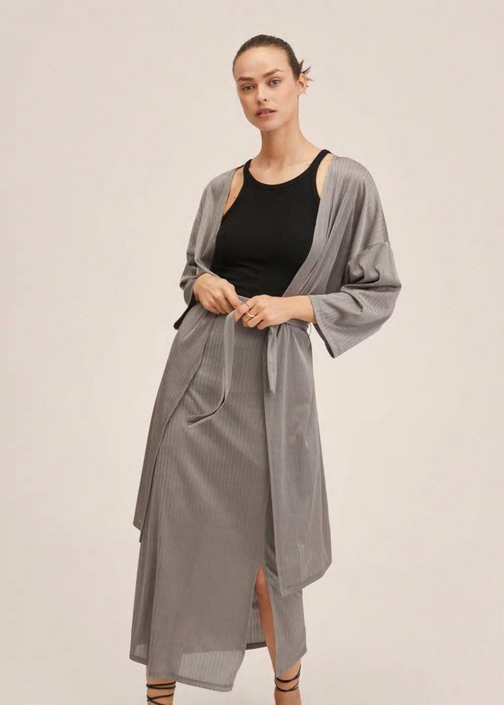 Tejido de punto Diseño largo Diseño oversize Cuello abierto Manga larga Cinturón desmontable Total look Ramadan Collection
