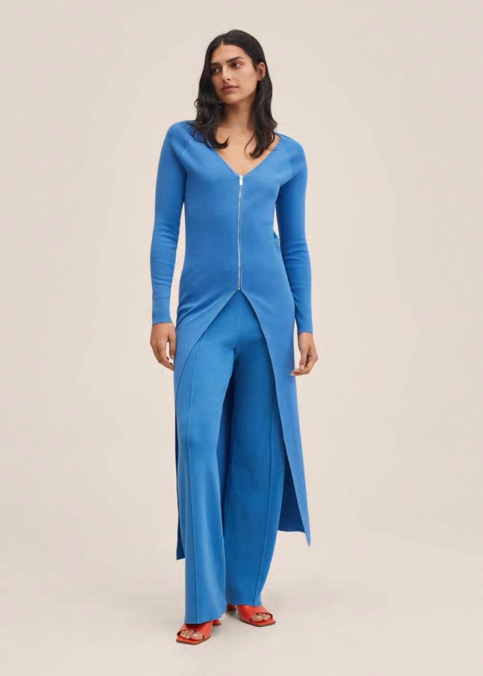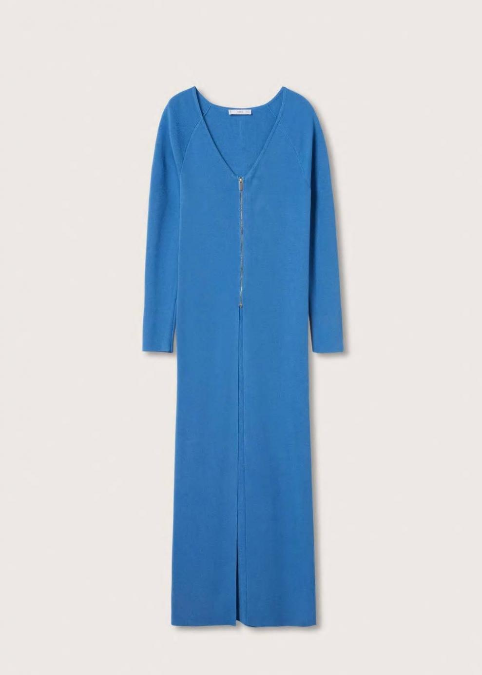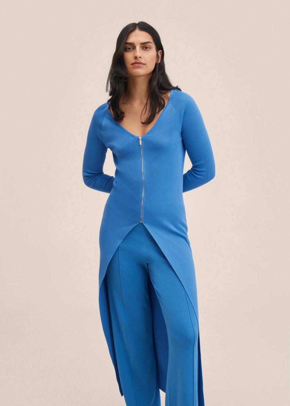 Tejido de punto fino Diseño largo Diseño entallado Cuello escotado Manga larga Abertura en el bajo parte delantera Cierre de cremallera Ra…