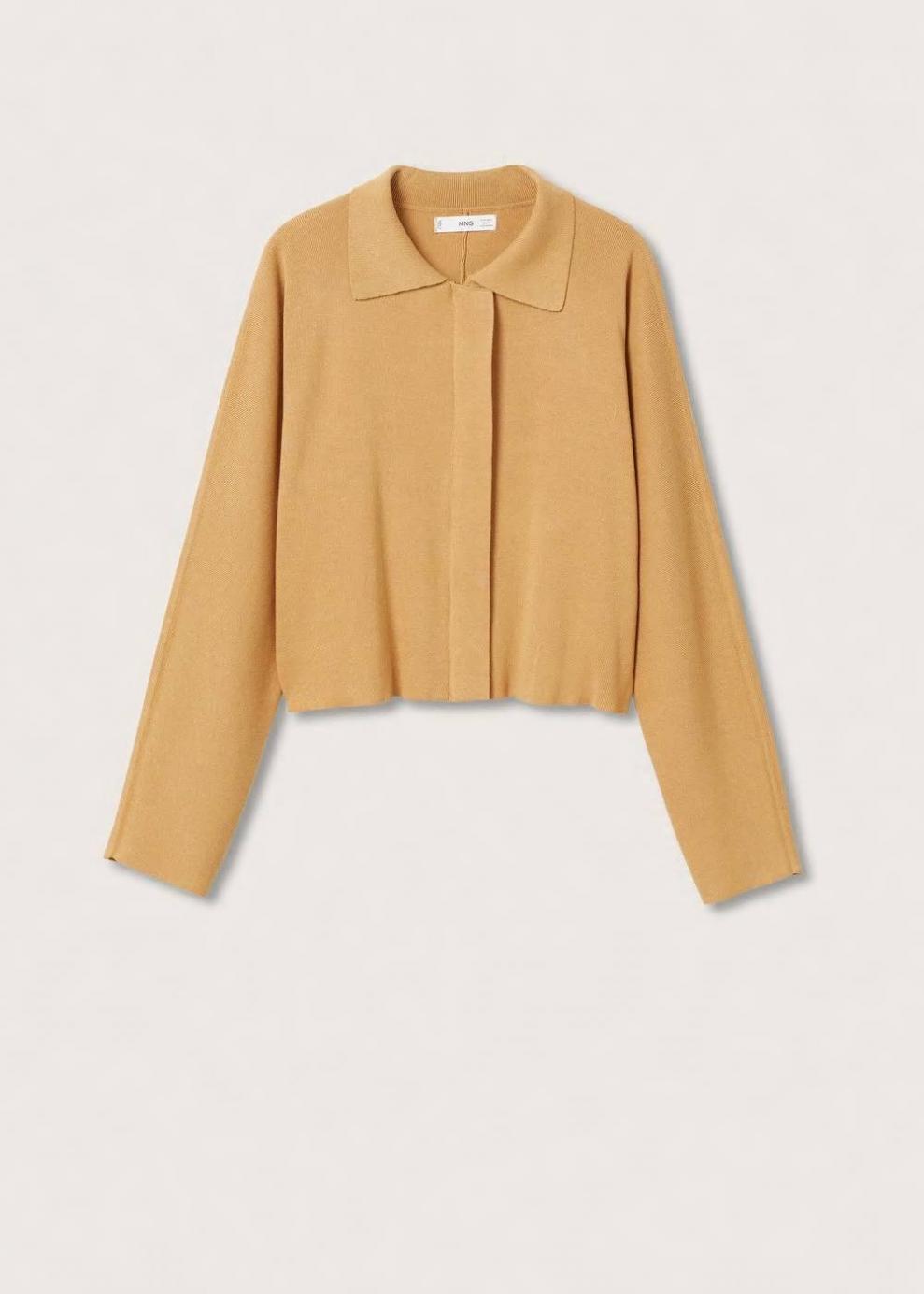 Tejido de punto fino Cierre delantero Diseño recto Diseño corto Cuello polo Manga larga Cierre oculto de cremallera en la parte delantera Total look…