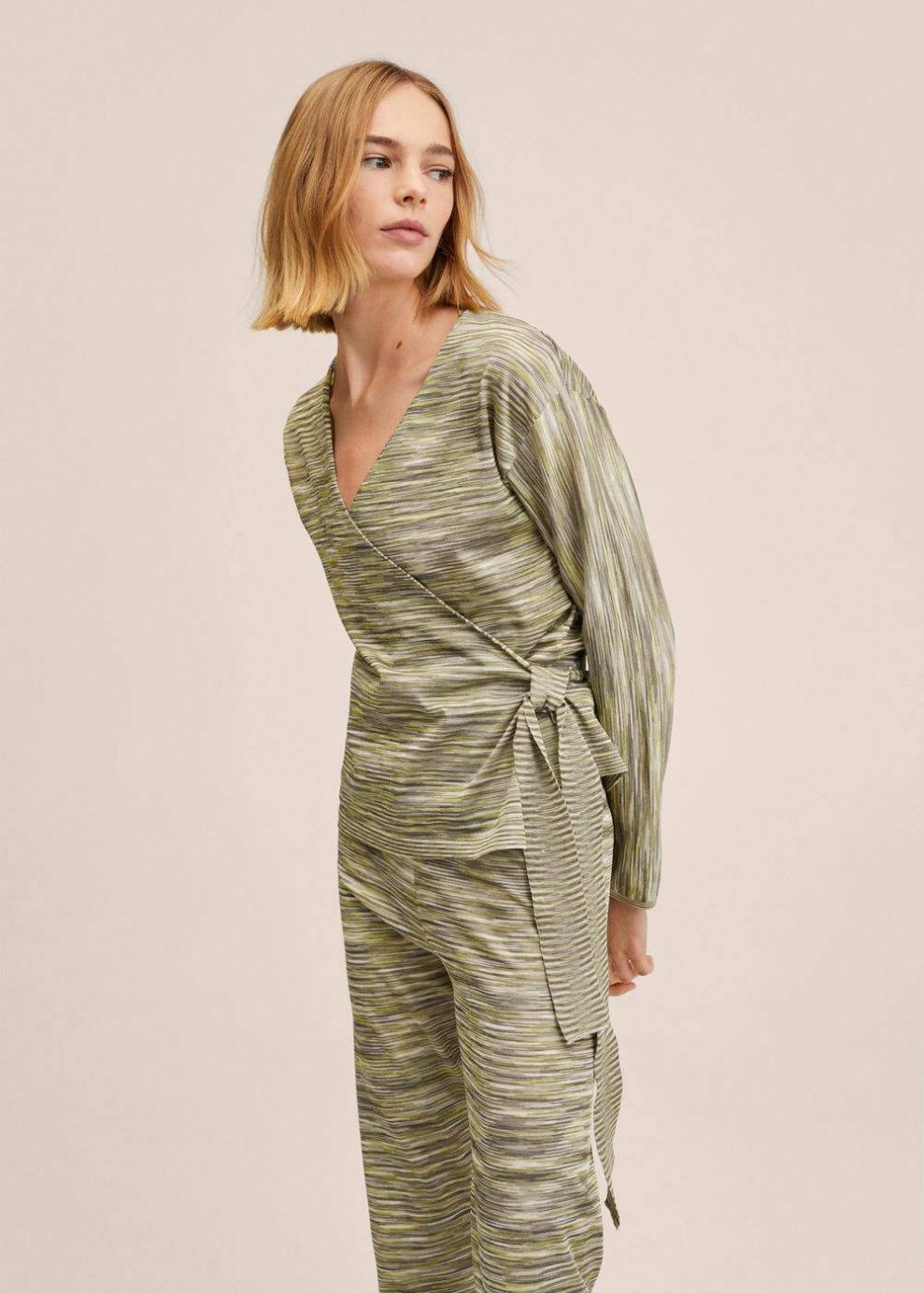 Tejido de punto fino Tejido elástico Estampado de rayas Diseño recto Cuello cruzado Manga larga Cierre de lazo Total look Ramadan Collection…