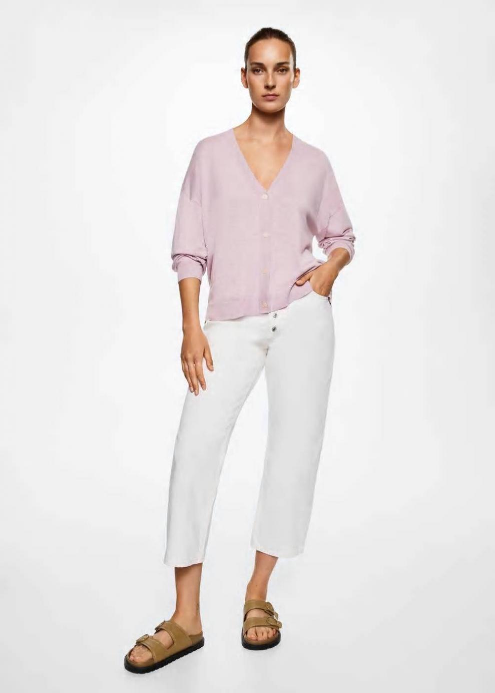 Mujer Cárdigan punto fino Morado Claro/Pastel | Cárdigans y jerséis Mango