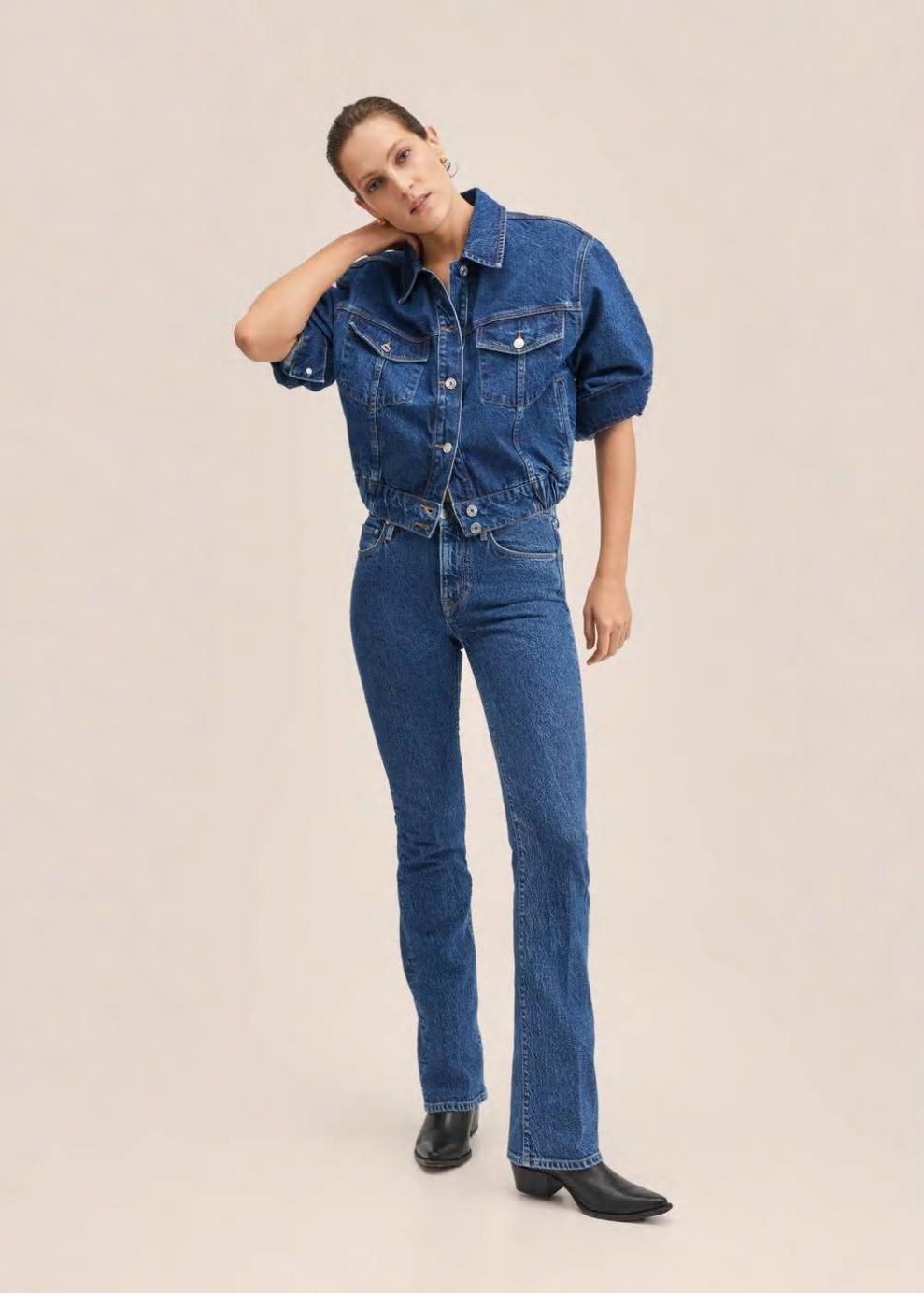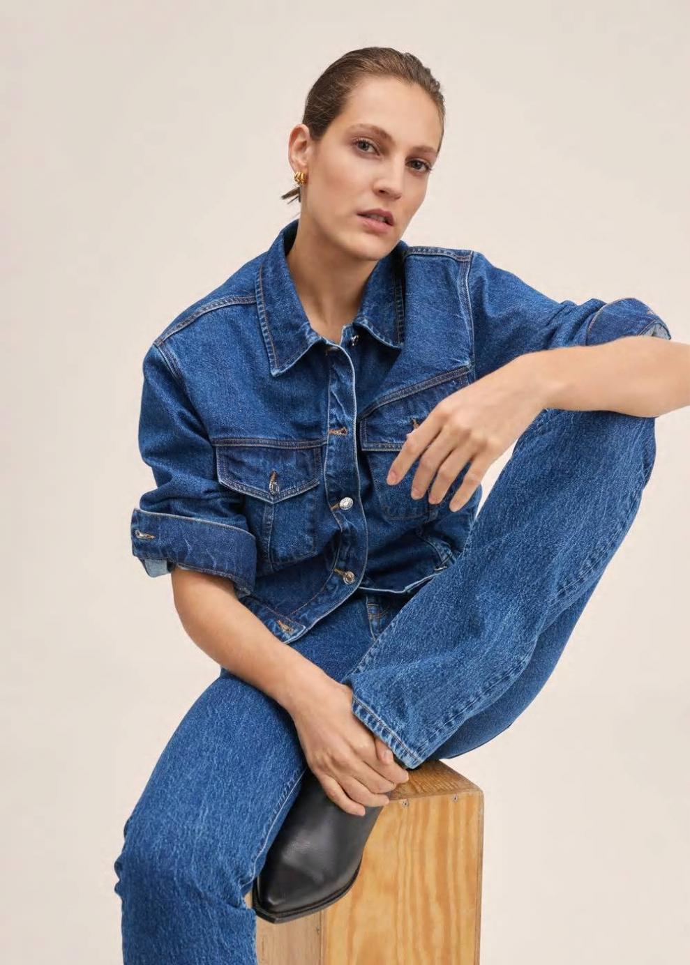 Colección Committed Tejido de algodón estilo tejano vaquero Diseño oversize Diseño corto Cuello de solapa Manga larga con puños abotonados Dos bolsillos sin solapa en la parte delanteraCierre delantero Cintura elástica Manga larga Costuras en contraste Cierre de botones en la parte delantera Diseño estándar Las prendas etiquetadas como Committed son productos que han sido confeccionadas con fibras y/o procesos de producción sostenible, reduciendo así su impacto ambiental. El objetivo de Mango es respaldar la implementación de prácticas más comprometidas con el medio ambiente, aumentando así, el número de prendas sostenibles en su colección.