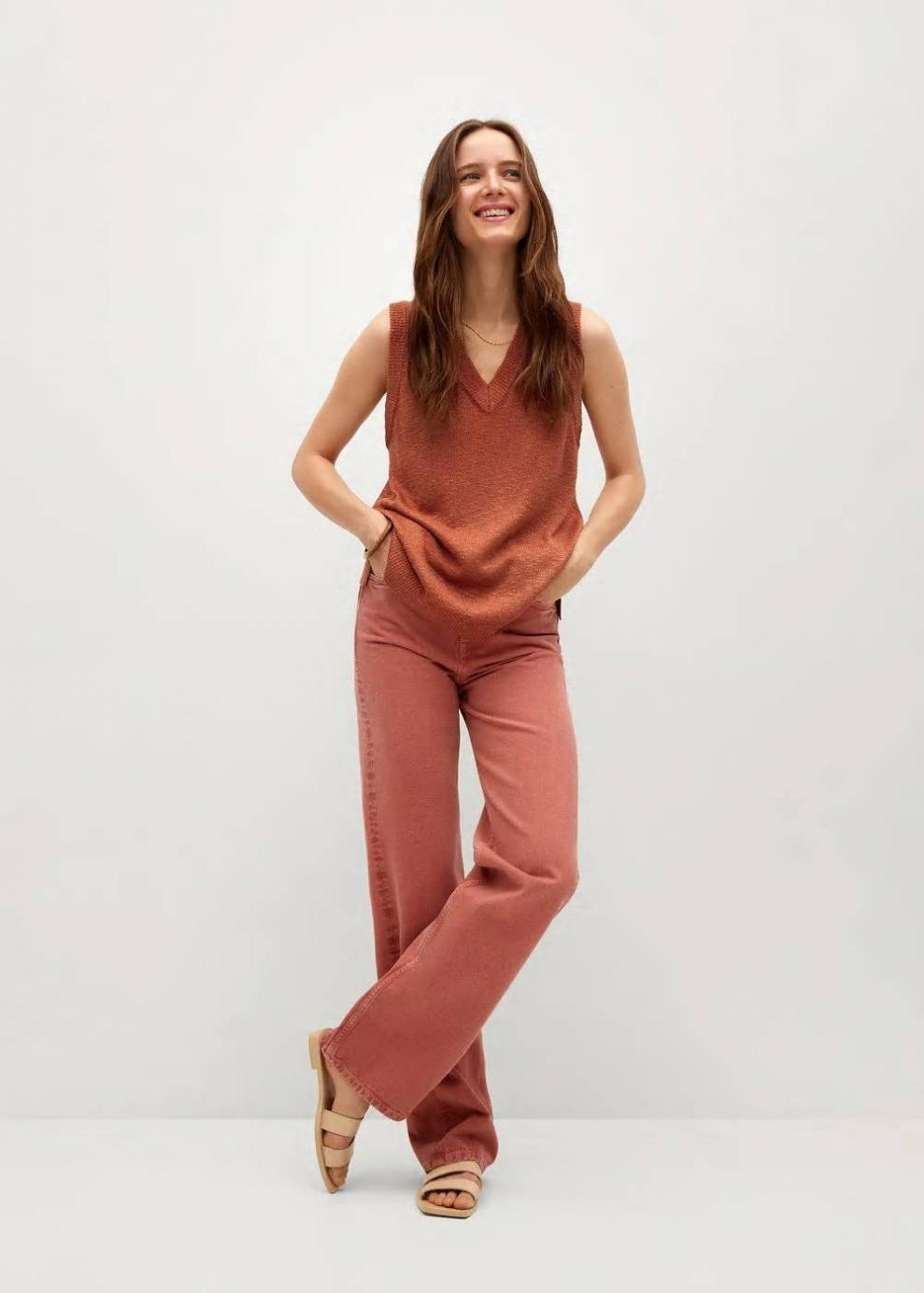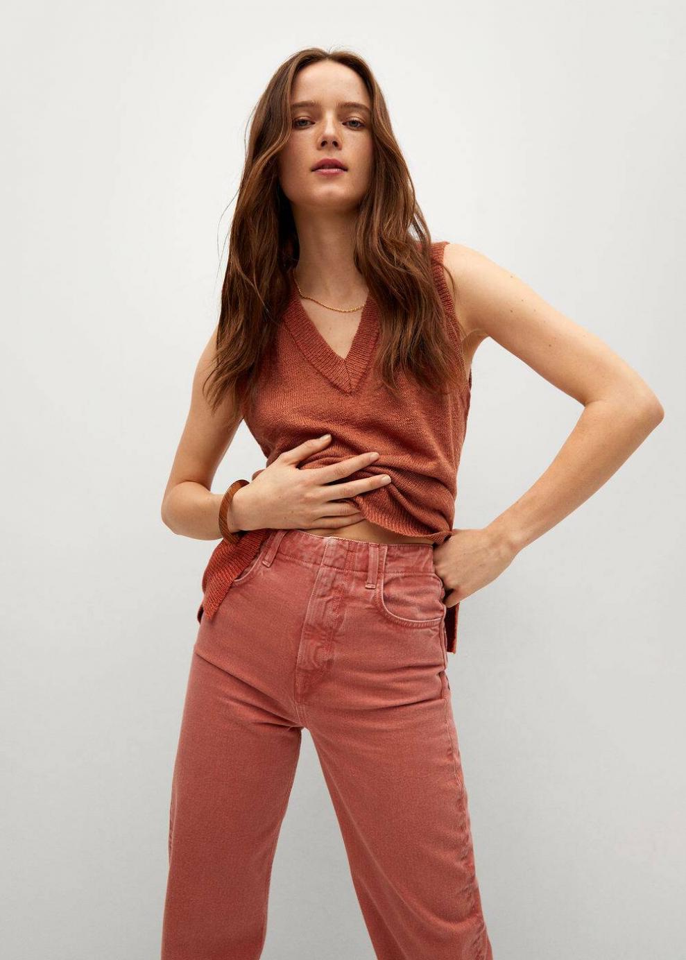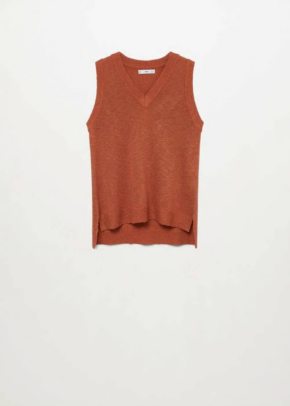 Tejido de punto Tejido con textura Diseño recto Escote de pico Sin mangas Terminaciones en canalé…