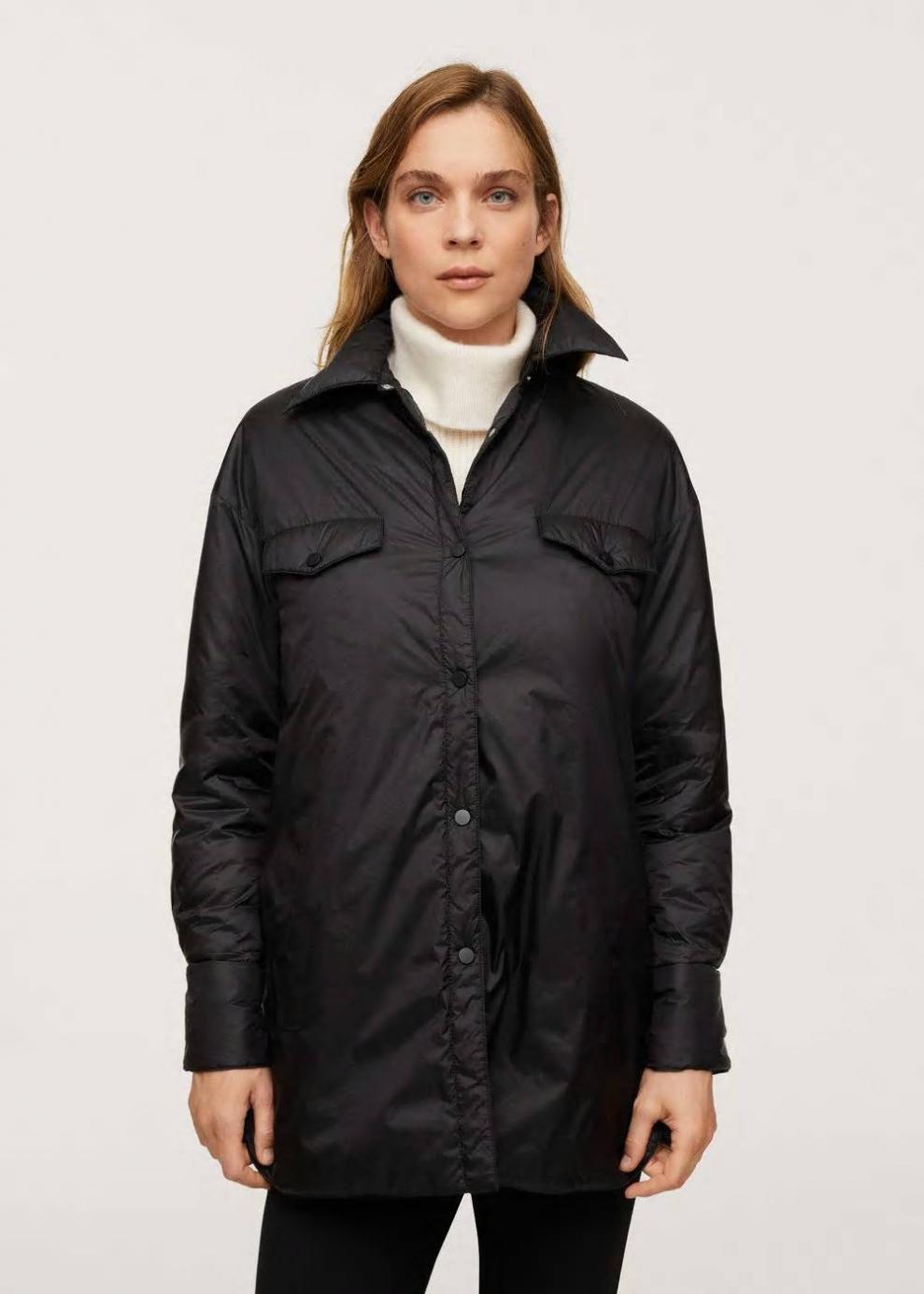 Diseño acolchado Diseño oversize Cuello de solapa Manga larga Dos bolsillos laterales Dos bolsillos de solapa con botón en el pecho Con relleno de wellon padding reciclado Forro interior Las prendas etiquetadas como Committed son productos que han sido confeccionadas con fibras y/o procesos de producción sostenible, reduciendo así su impacto ambiental. El objetivo de Mango es respaldar la implementación de prácticas más comprometidas con el medio ambiente, aumentando así, el número de prendas sostenibles en su colección.