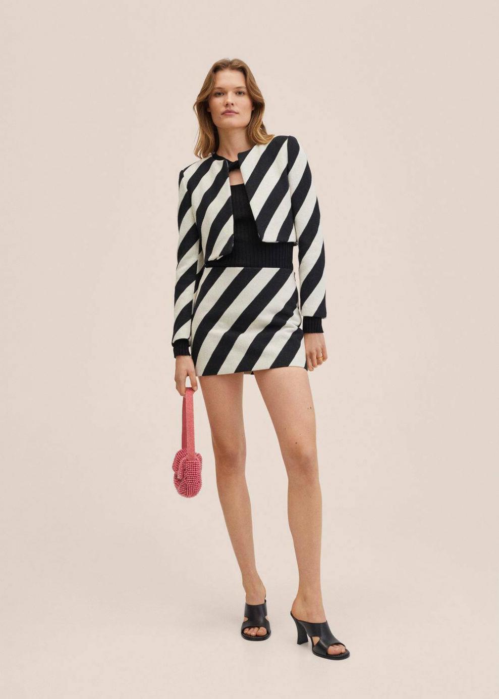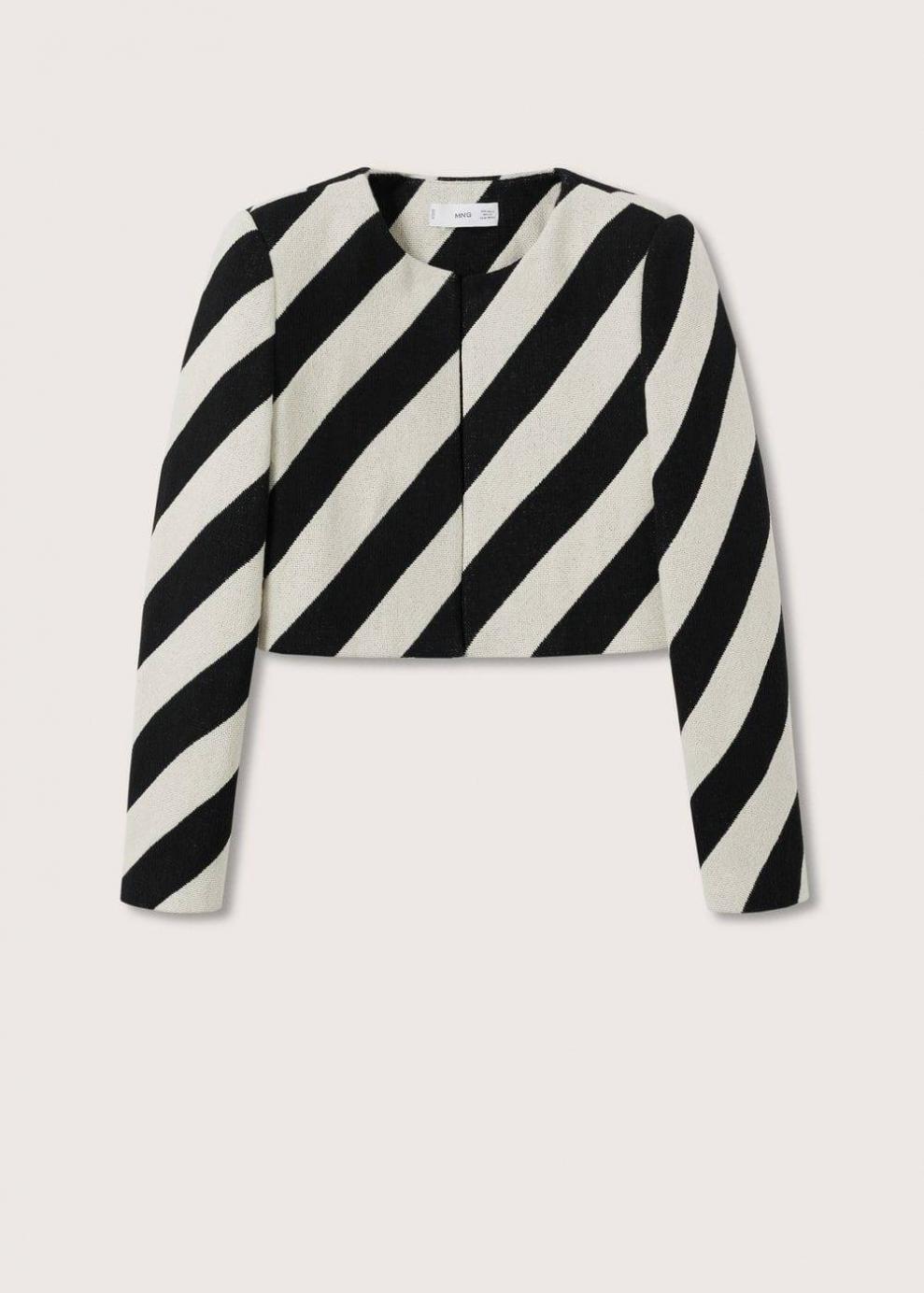 Colección Committed Tejido con algodón Estampado de rayas Diseño recto Diseño crop Estilo traje Cuello redondo Manga larga Forro interior Sin cierre Total look Las prendas etiquetadas como Committed son productos que han sido confeccionadas con fibras y/o procesos de producción sostenible, reduciendo así su impacto ambiental. El objetivo de Mango es respaldar la implementación de prácticas más comprometidas con el medio ambiente, aumentando así, el número de prendas sostenibles en su colección.