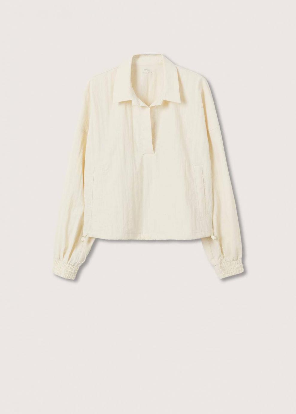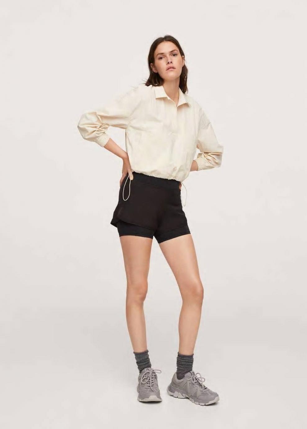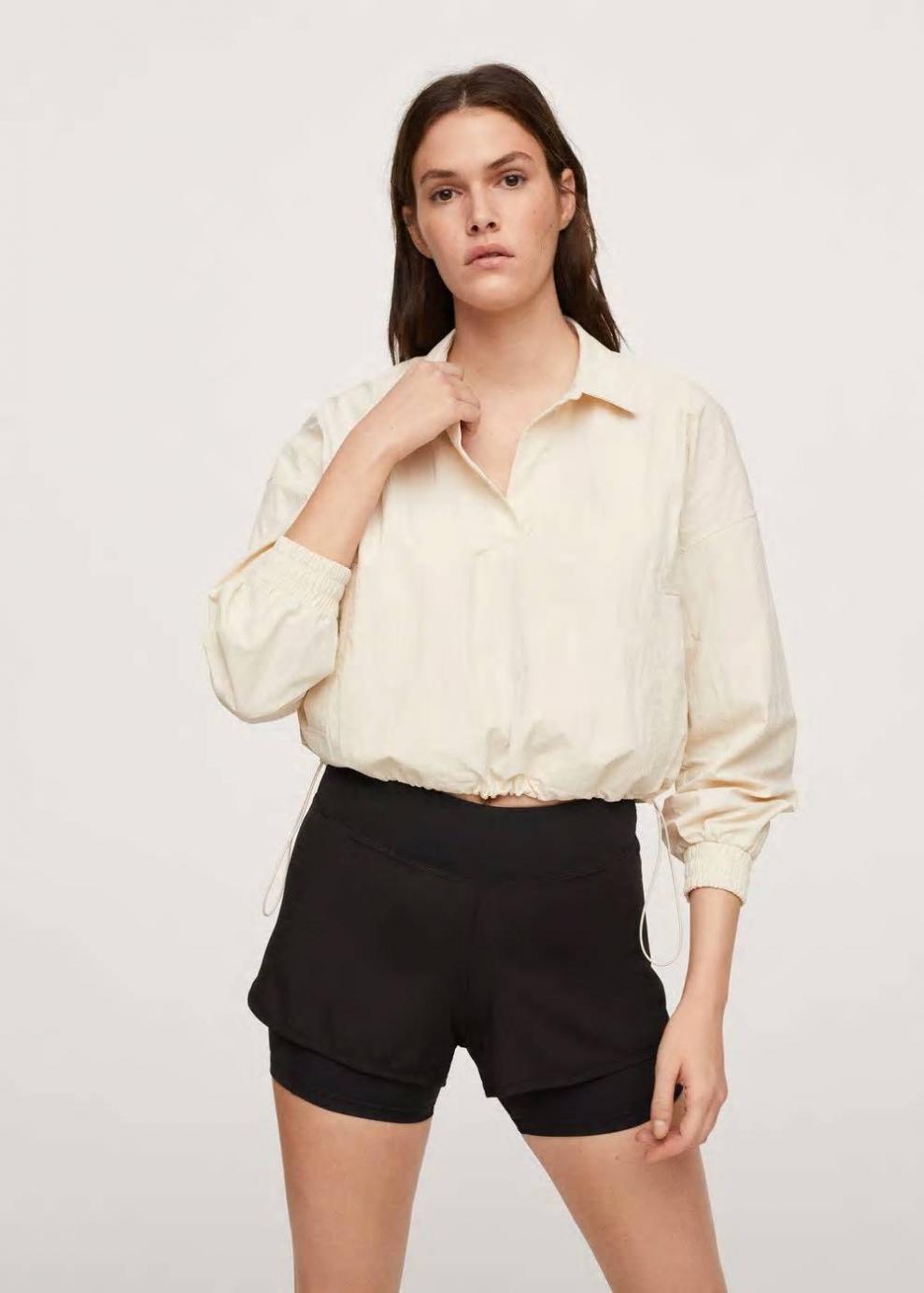 Water proof: Tejido técnico a prueba de agua Diseño recto Diseño corto Cuello pico con solapa Manga larga con puños elásticos Trabillas ajustables en el bajo