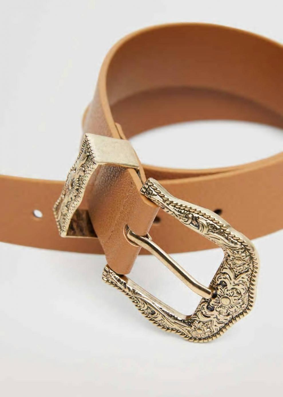 Diseño en relieve Trabilla metálica Cierre de hebilla Perforación para ajuste de talla gratuito en tiendas MANGO 3,5 cm de ancho…
