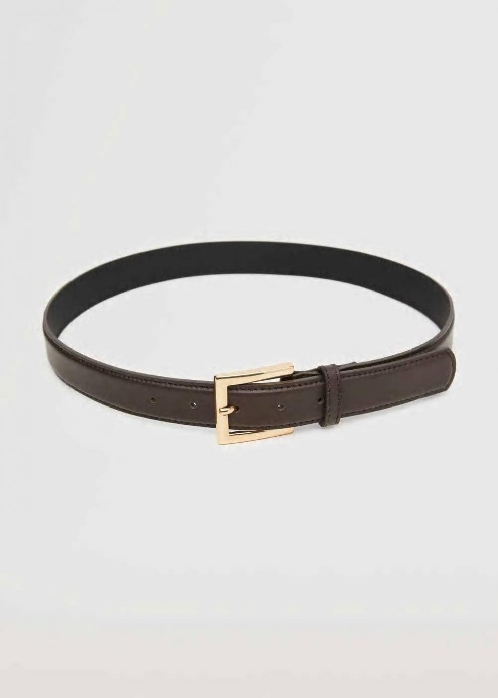 Mujer Cinturón piel hebilla cuadrada Marrón | Cinturones Mango