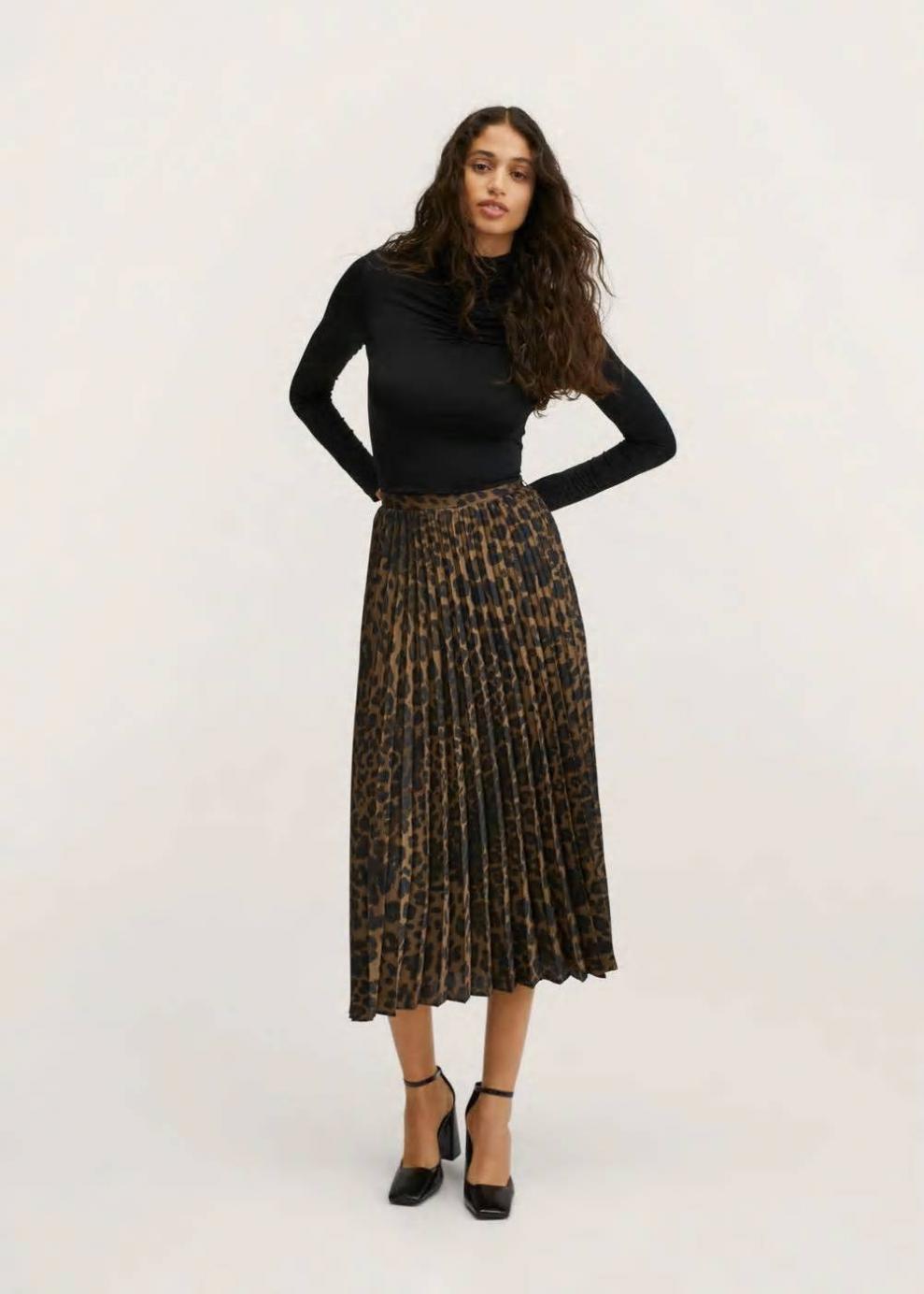 Cierre lateral Tejido plisado Sin forro interior Tejido ligero Tiro alto Diseño evasé Estampado animal print Diseño midi Cierre lateral de cremallera Las prendas etiquetadas como Committed son productos que han sido confeccionadas con fibras y/o procesos de producción sostenible, reduciendo así su impacto ambiental. El objetivo de Mango es respaldar la implementación de prácticas más comprometidas con el medio ambiente, aumentando así, el número de prendas sostenibles en su colección.