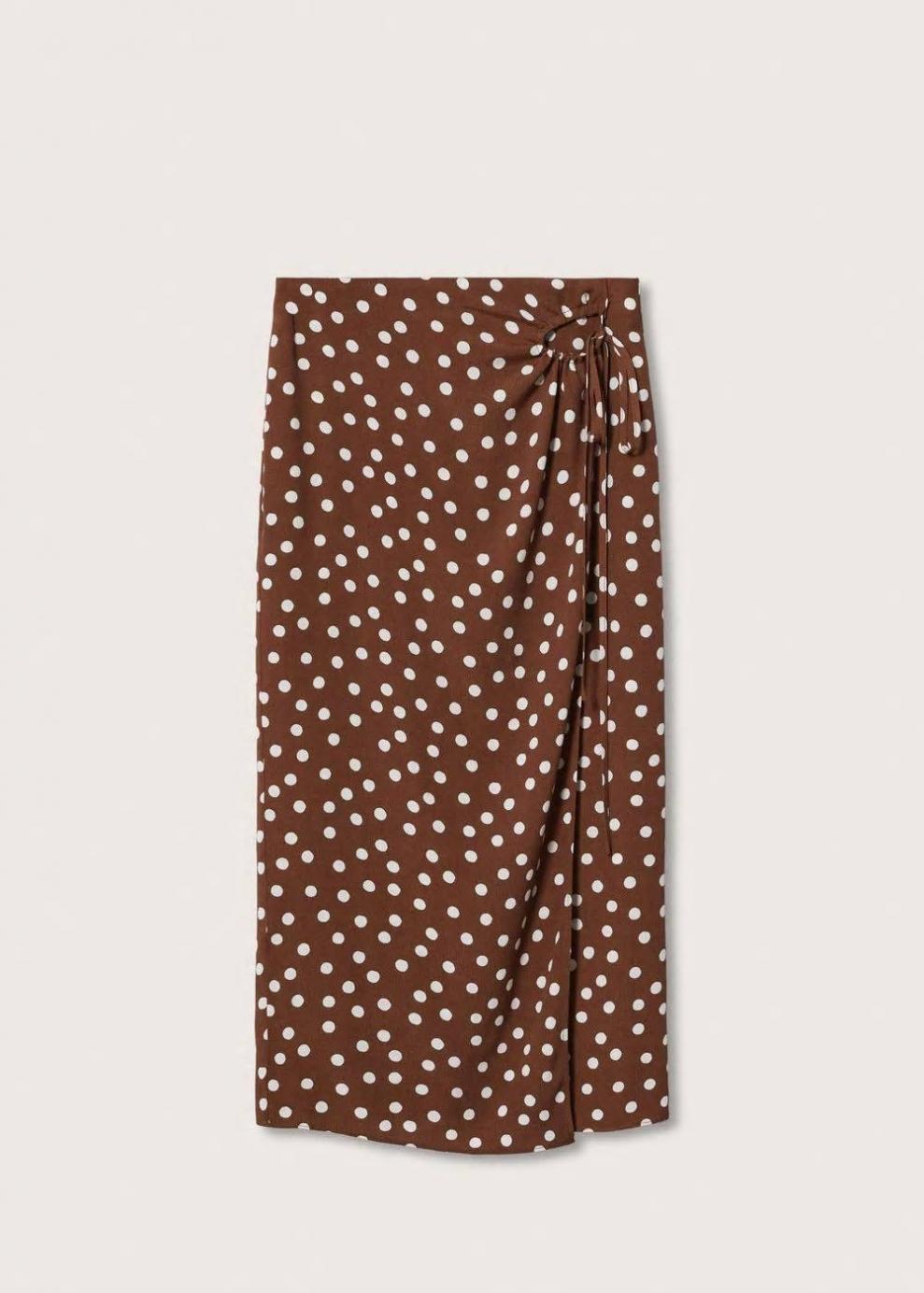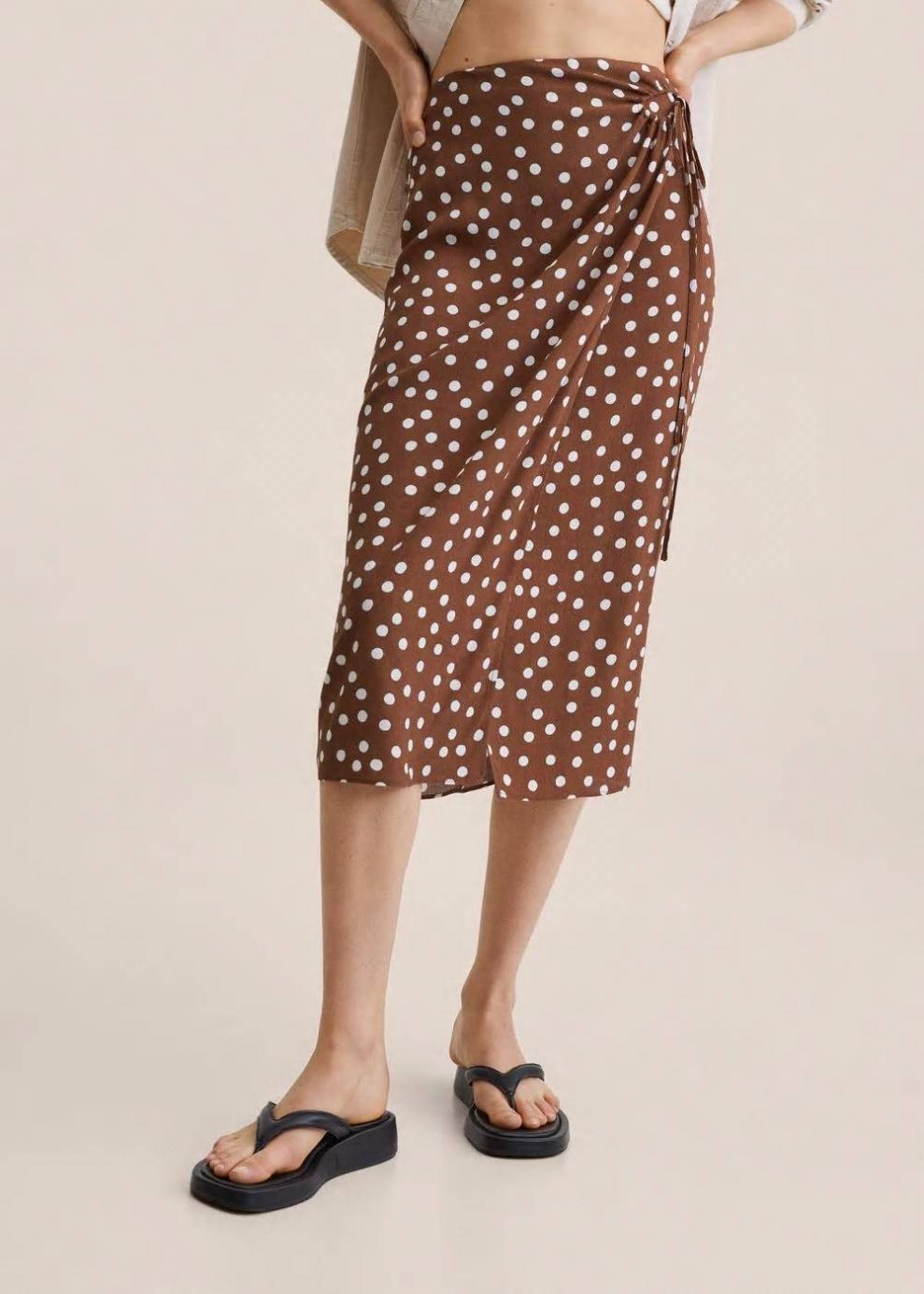 Tejido fluido Estampado animal print Estampado de lunares Diseño midi Diseño recto Diseño cruzado Tiro medio Cierre de cremallera en la parte posterior Fruncido lateral con lazo Disponible Plus