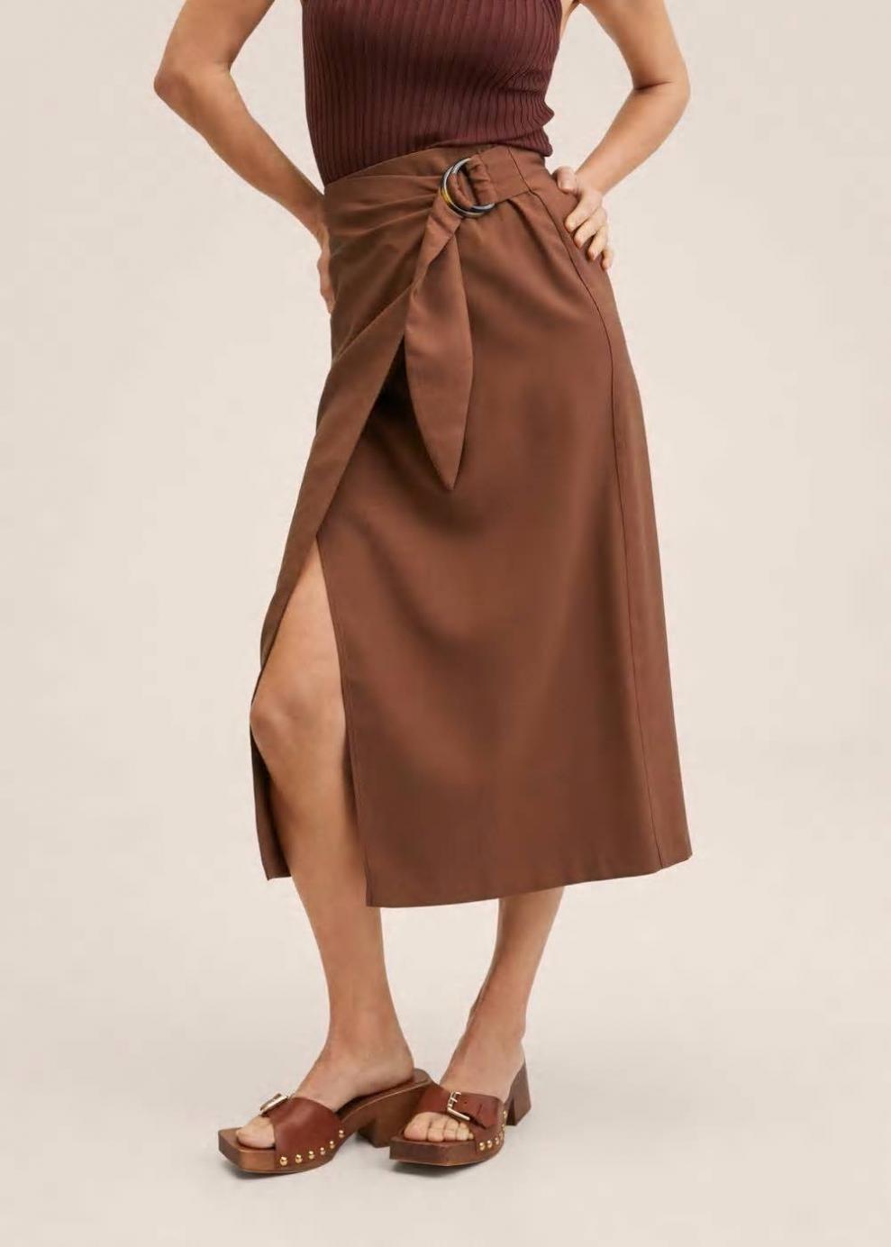 Sé el primero en valorar “Mujer Falda cruzada hebilla Marrón | Faldas Mango”