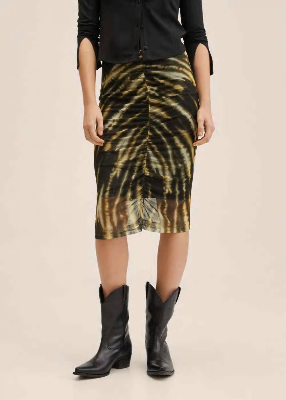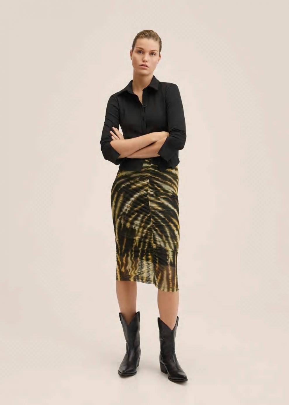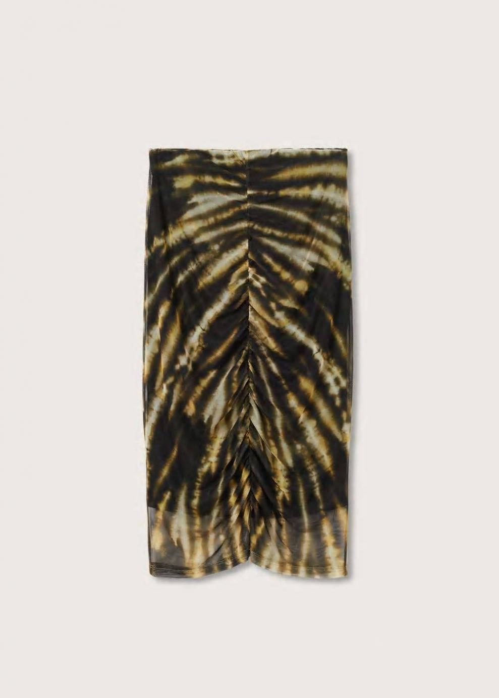 Sin cierre Tejido ligero Faja incorporada Tejido semitransparente Slim fit Tiro medio Estampado animal print Diseño recto Diseño midi Detalle fruncido Cintura elástica Forro interior