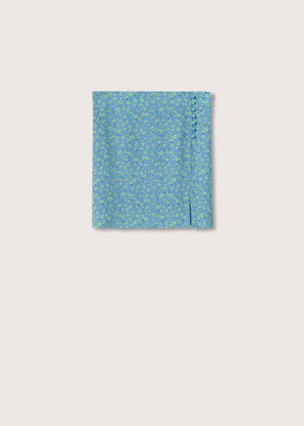 Tejido fluido Estampado floral Diseño recto Diseño mini Tiro medio Botones decorativos Abertura en el bajo parte delantera Forro interior Cierre lateral de cremallera Total look…