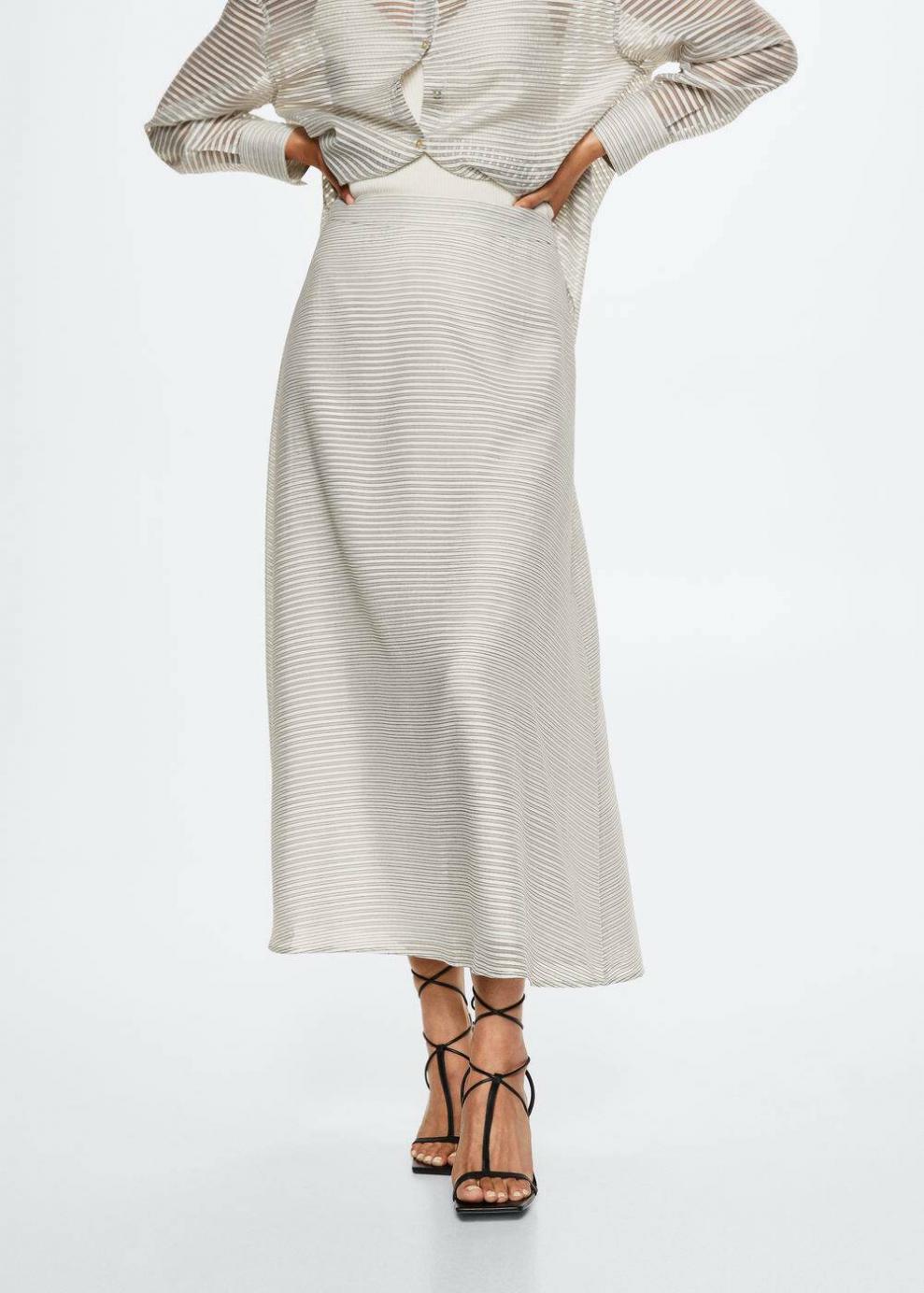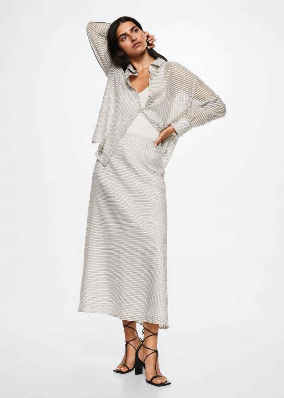 Tejido fluido Estampado de rayas Diseño evasé Diseño midi Forro interior…