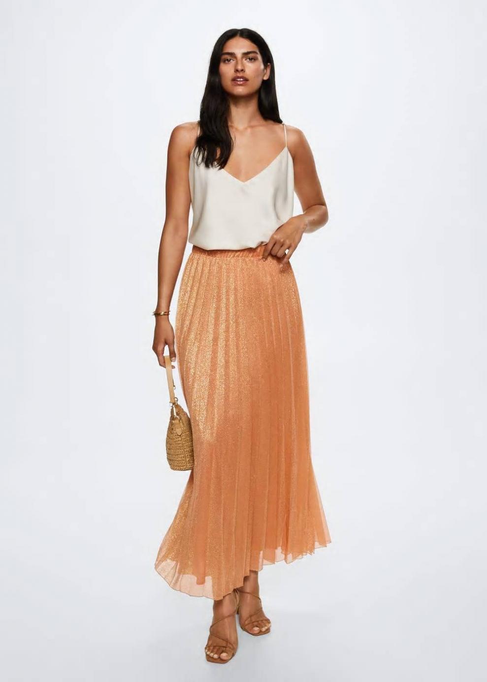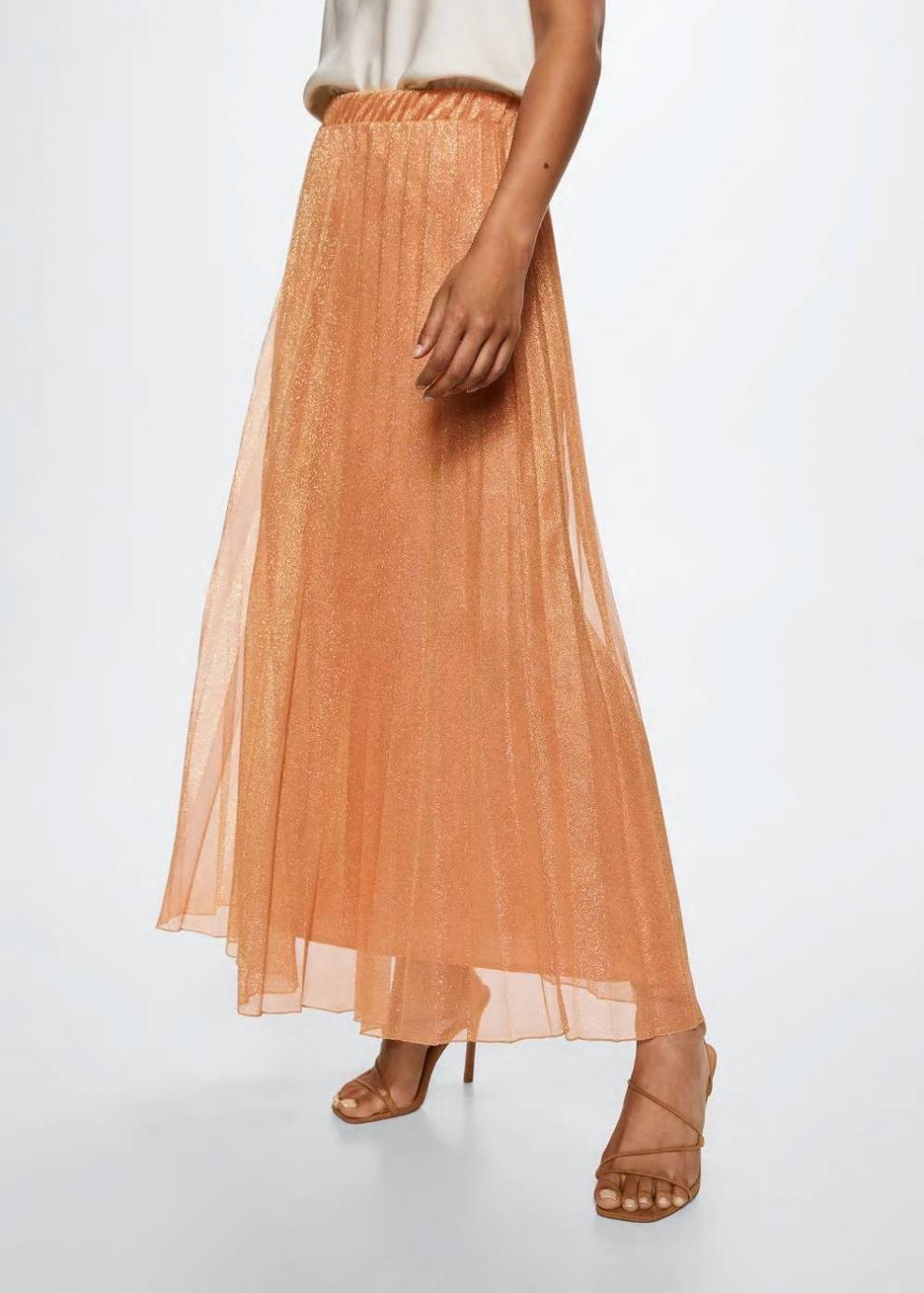 Diseño largo Tejido fluido Diseño midi Tejido de lúrex Diseño plisado Cintura elástica Colección fiesta y ceremonia…