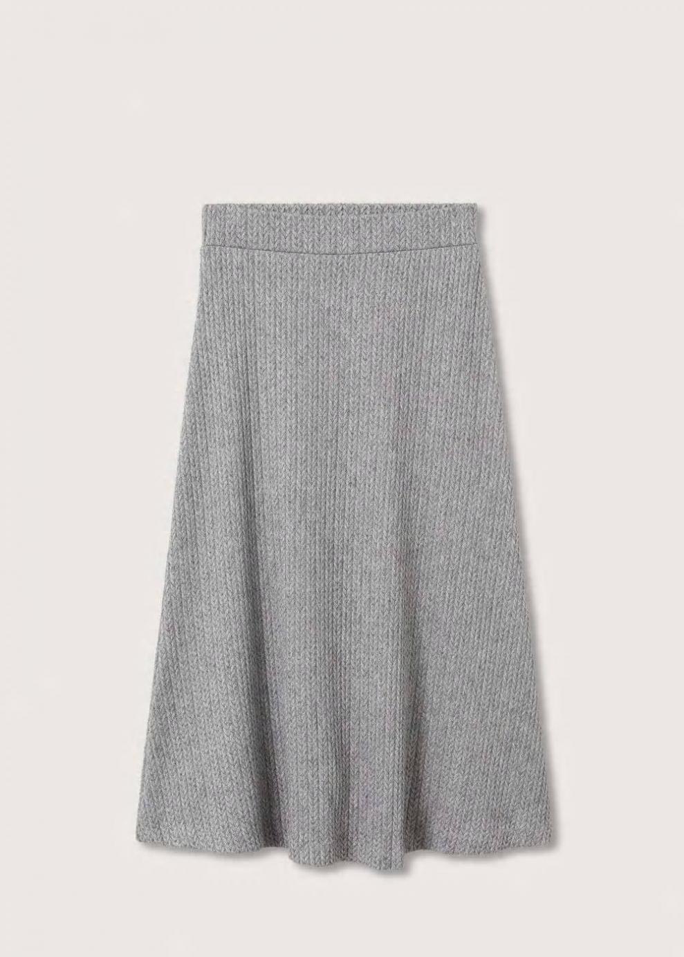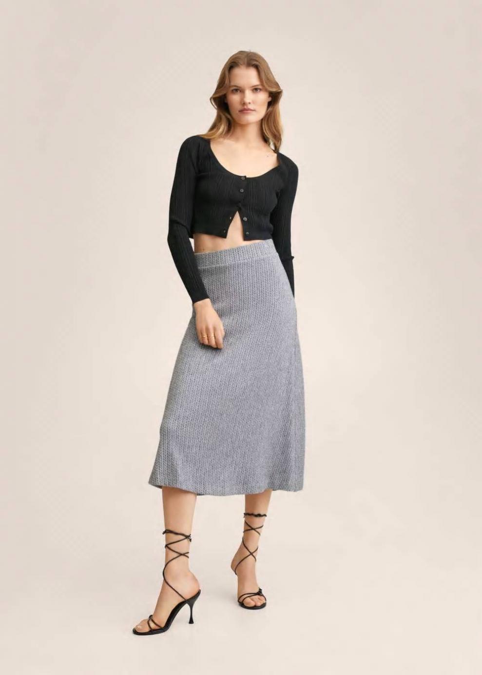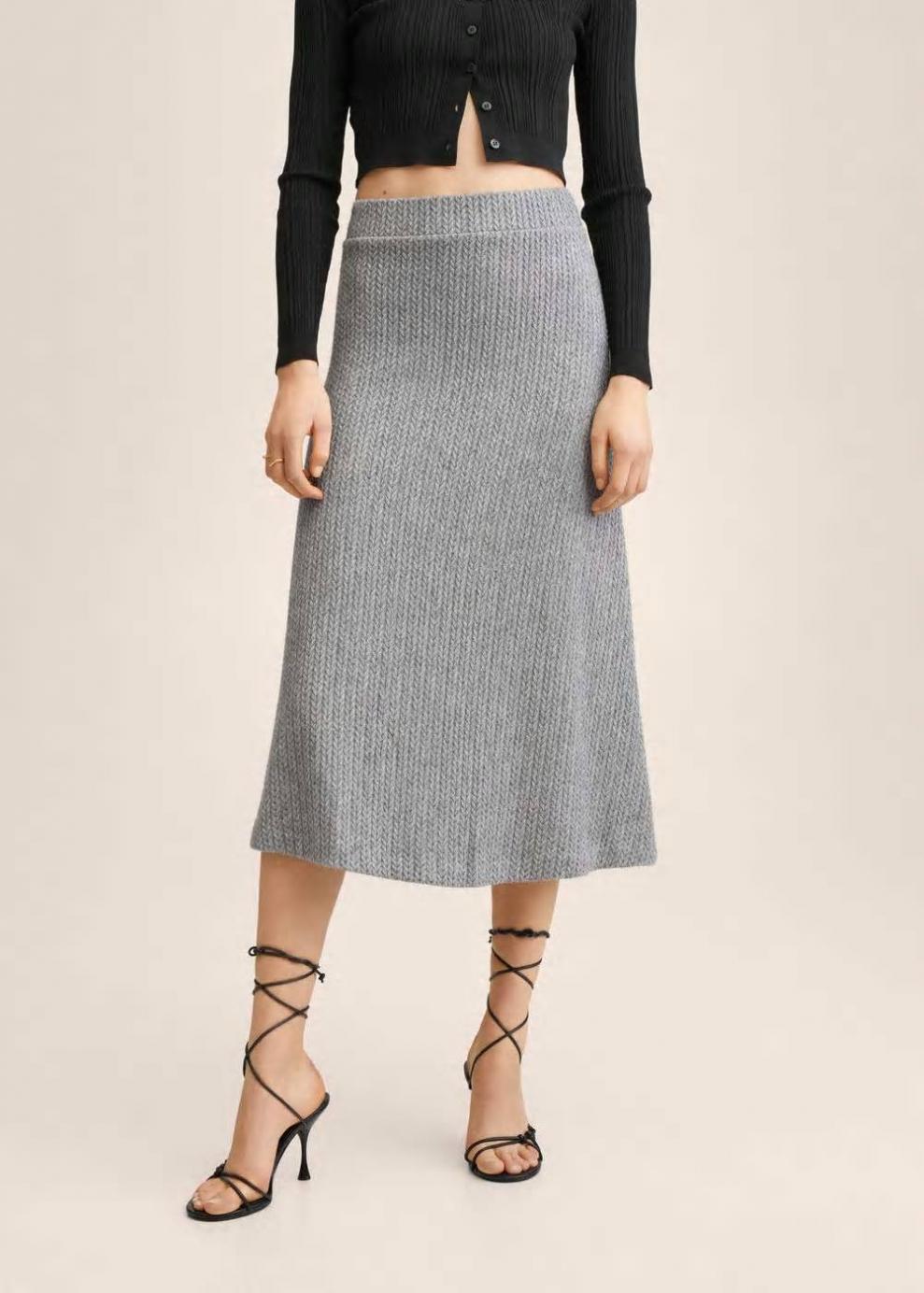 Colección Committed Tejido punto trenzado Diseño evasé Diseño midi Cintura elástica Las prendas etiquetadas como Committed son productos que han sido confeccionadas con fibras y/o procesos de producción sostenible, reduciendo así su impacto ambiental. El objetivo de Mango es respaldar la implementación de prácticas más comprometidas con el medio ambiente, aumentando así, el número de prendas sostenibles en su colección.