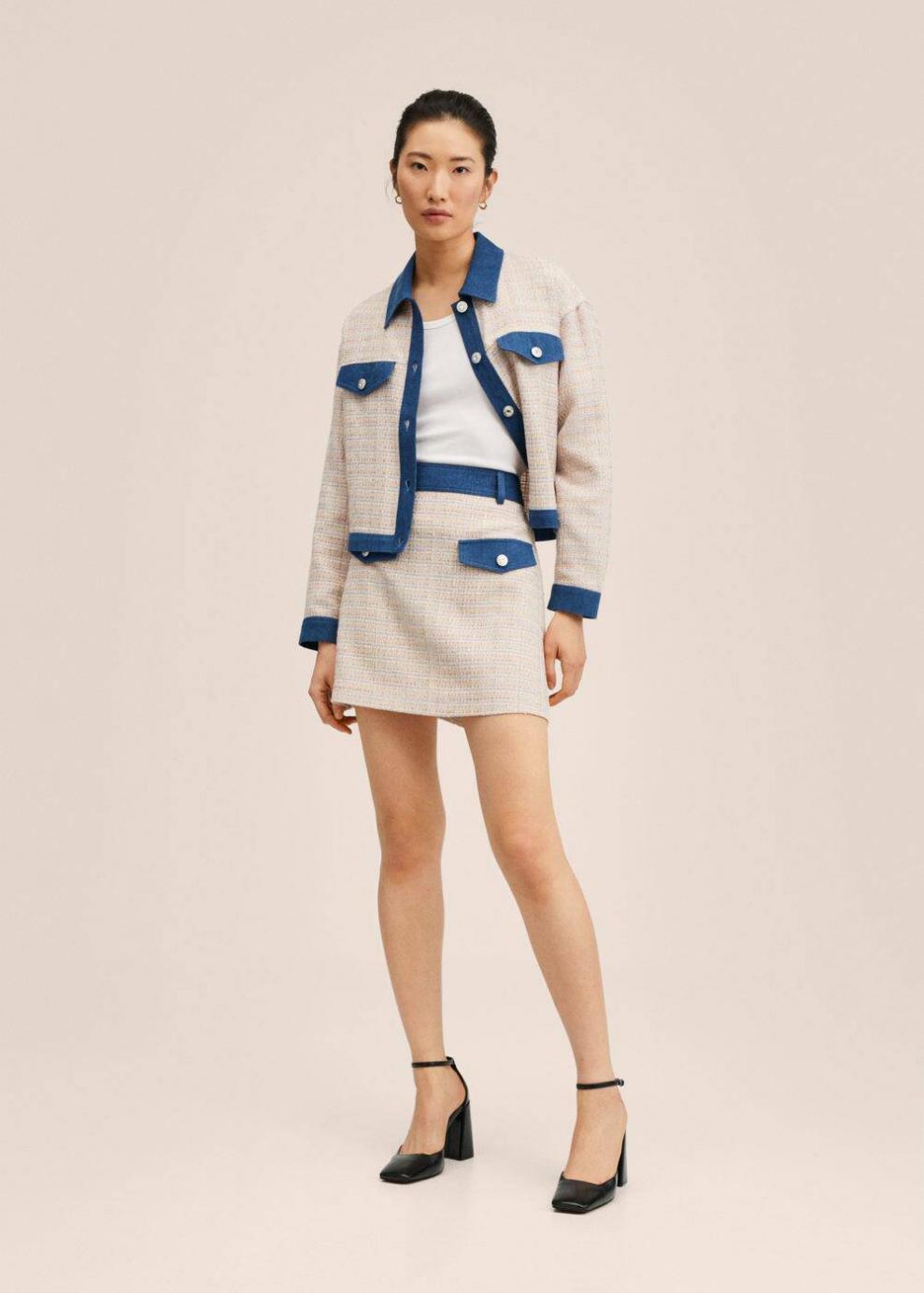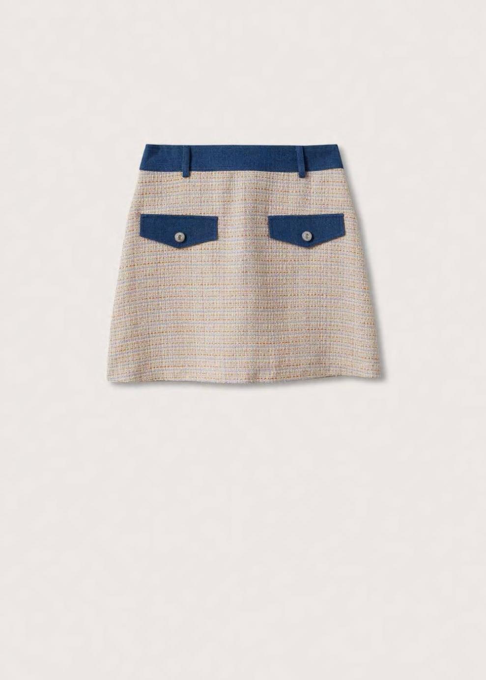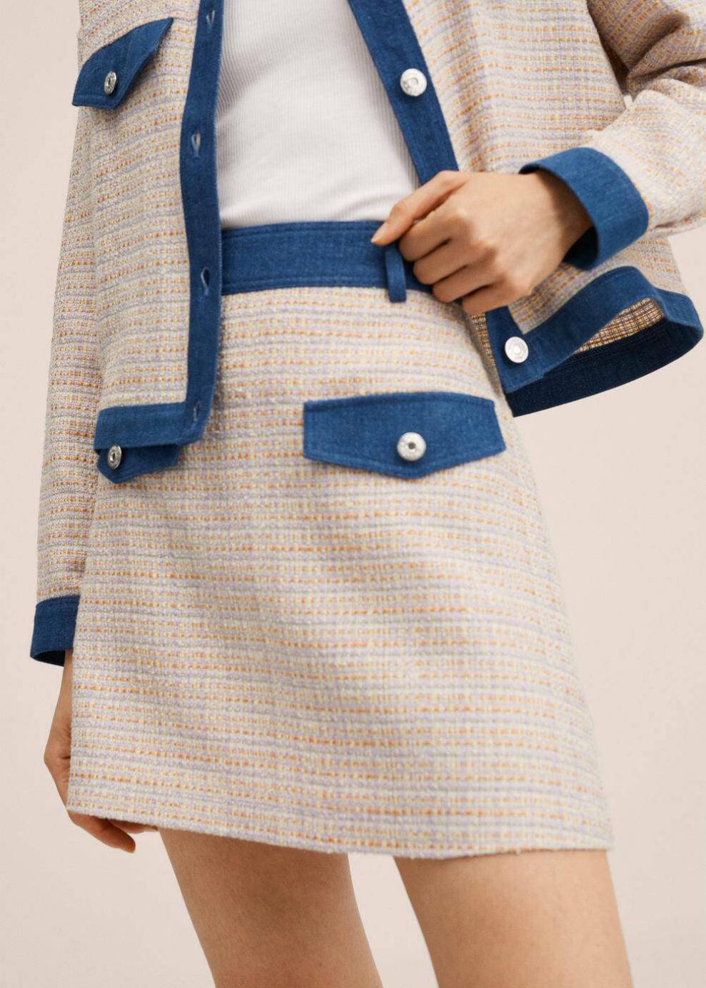 Tejido tweed Diseño corto Diseño recto Tiro medio Bolsillos decorativos Detalle denim Total look