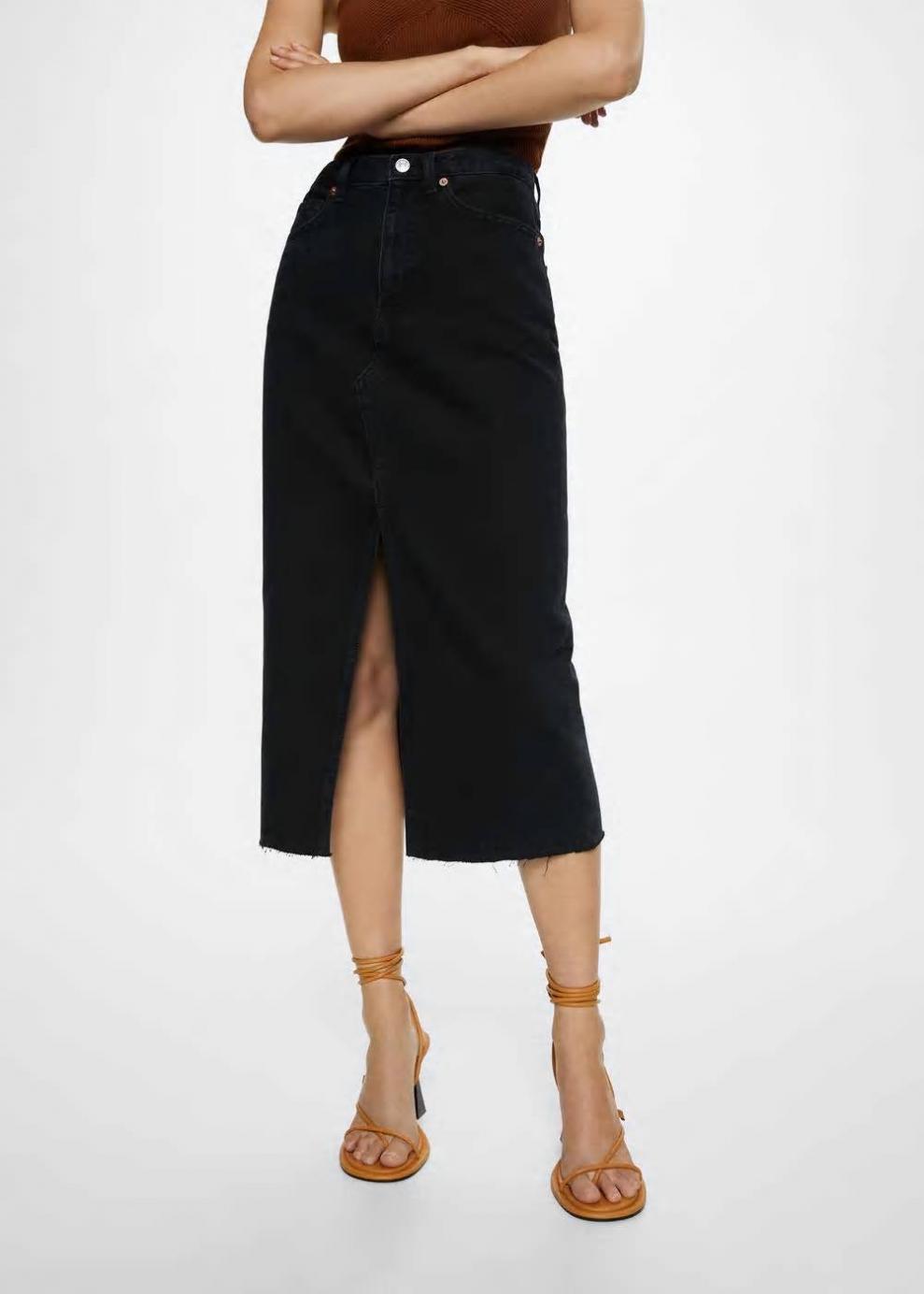 Mujer Falda vaquera abertura Denim Negro | Faldas Mango
