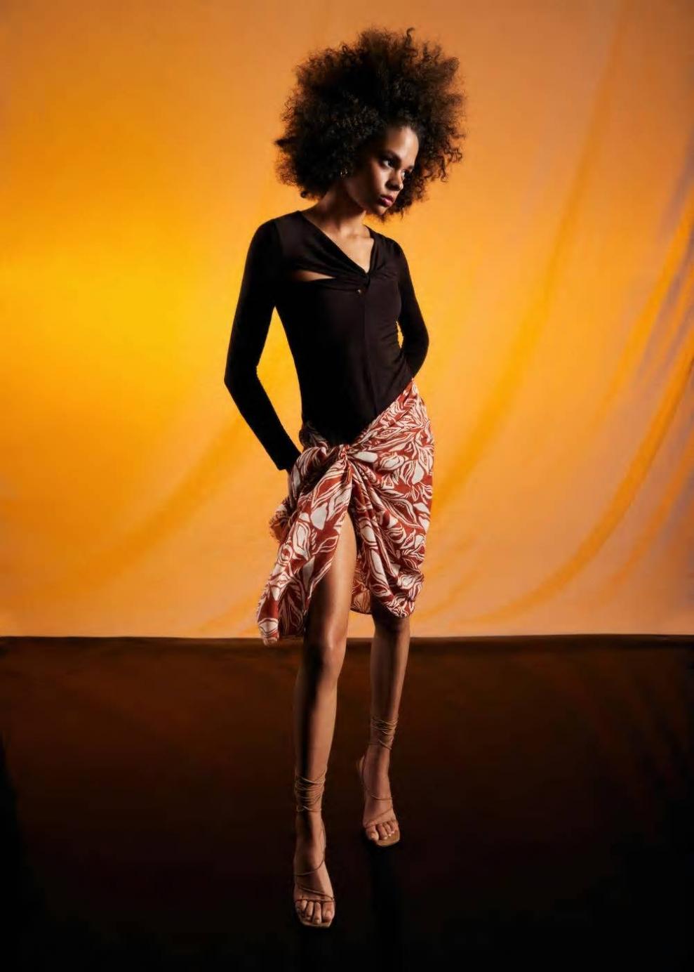 Colección Committed Tejido mezcla de poliéster reciclado Estampado floral Diseño largo Terminaciones deshilachadas Las prendas etiquetadas como Committed son productos que han sido confeccionadas con fibras y/o procesos de producción sostenible, reduciendo así su impacto ambiental. El objetivo de Mango es respaldar la implementación de prácticas más comprometidas con el medio ambiente, aumentando así, el número de prendas sostenibles en su colección.